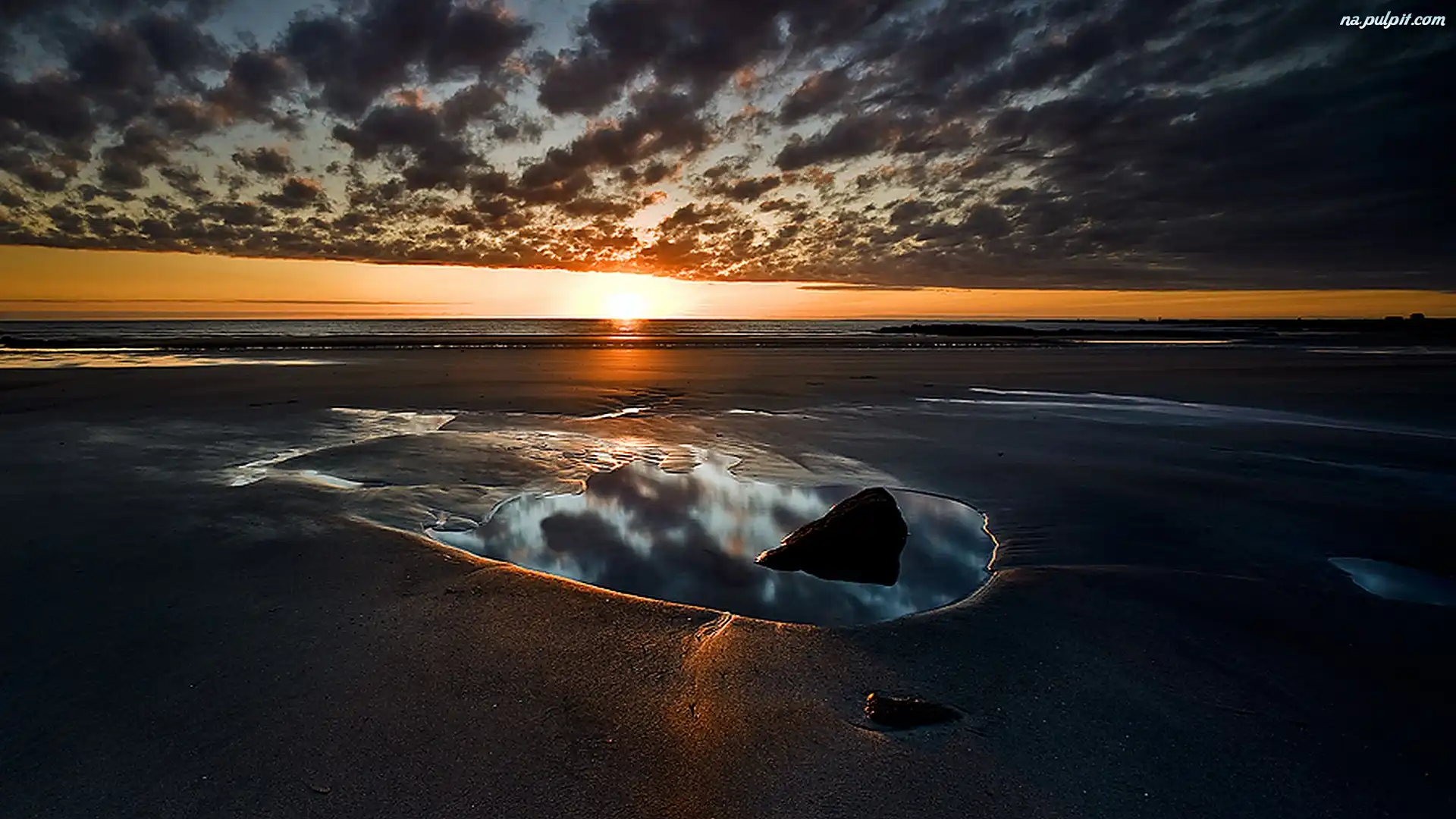 Słońca, Plaża, Lustrzane, Odbicie, Zachód Na Pulpit