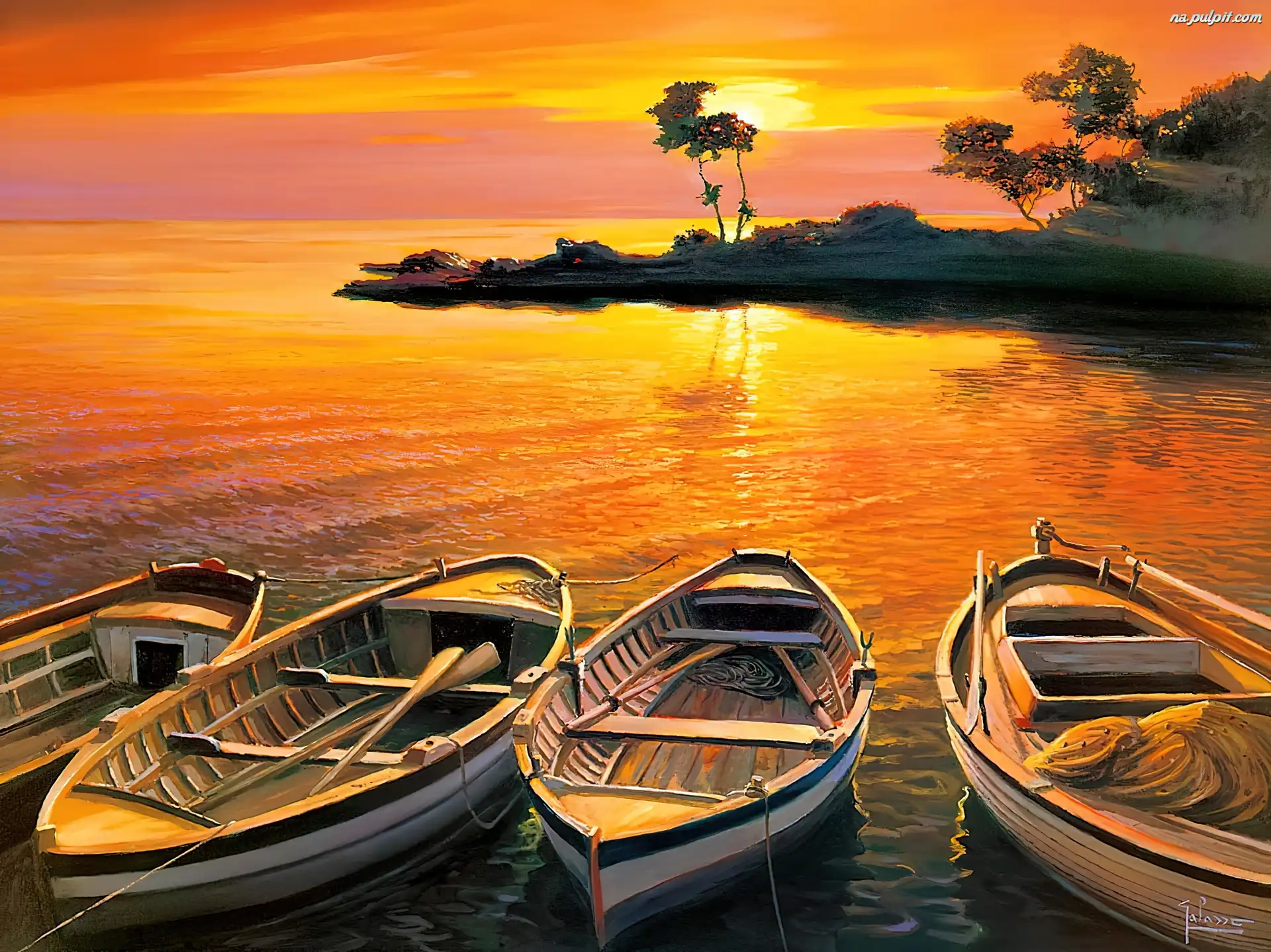 Słońca, Morze, Łódki, Zachód Na Pulpit