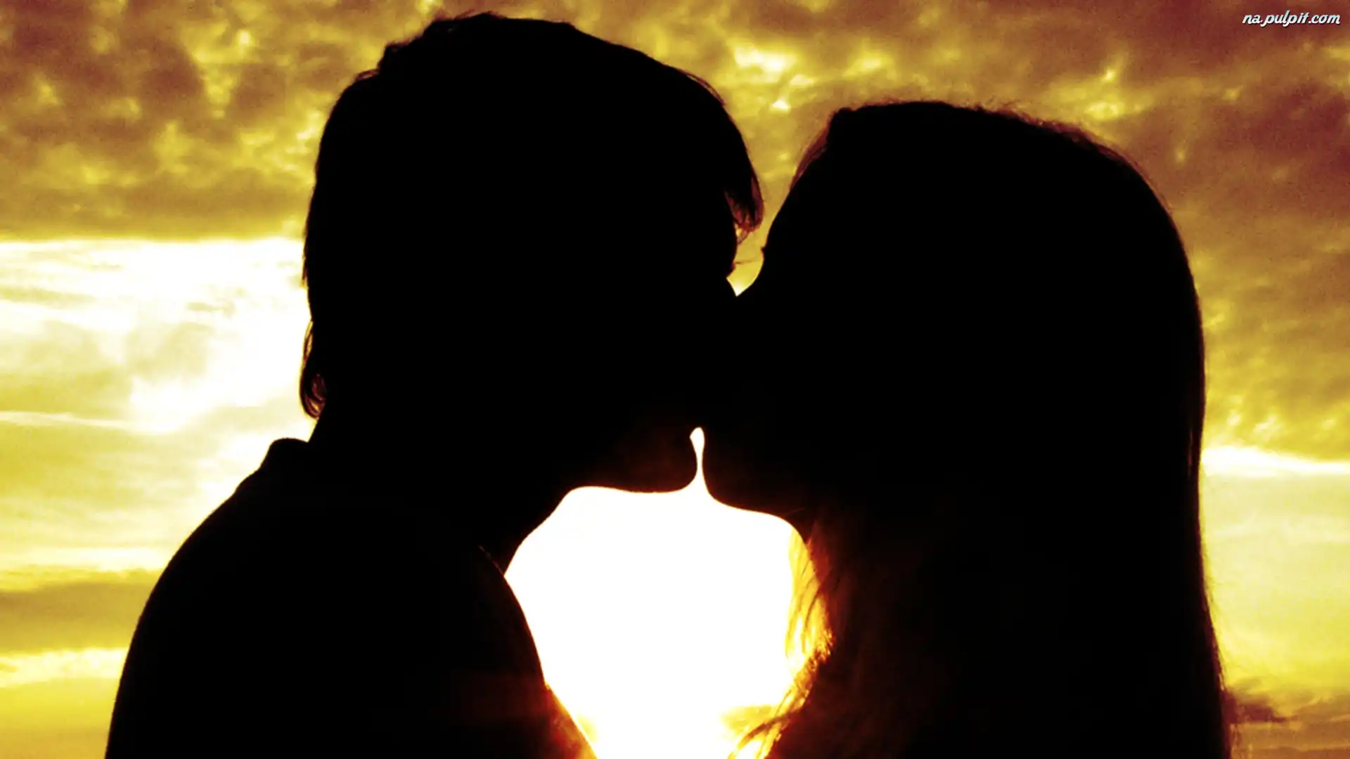 Słońca, Pocałunek, Para, Zachód Na Pulpit