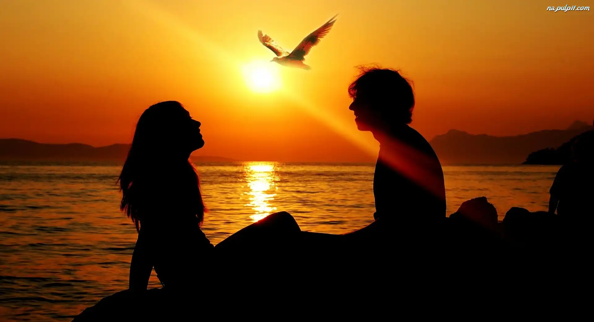 Słońca, Ptak, Para, Zachód