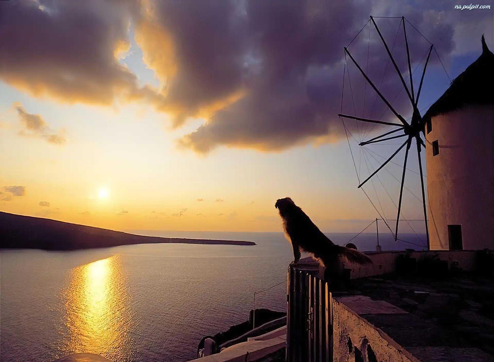Słońca, Wiatrak, Pies, Zachód