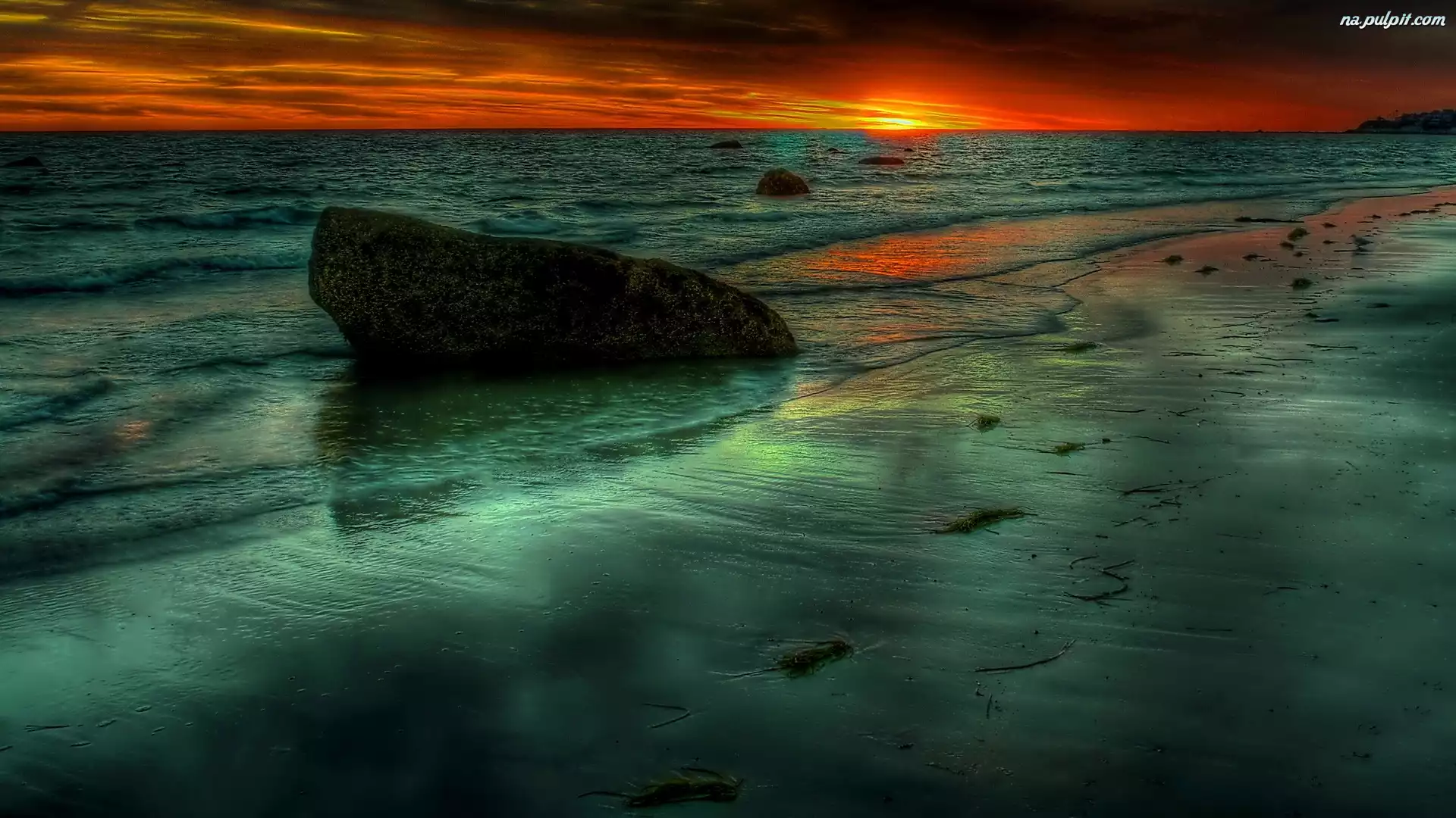 Słońca, Kamień, Morze, Plaża, Zachód Na Pulpit