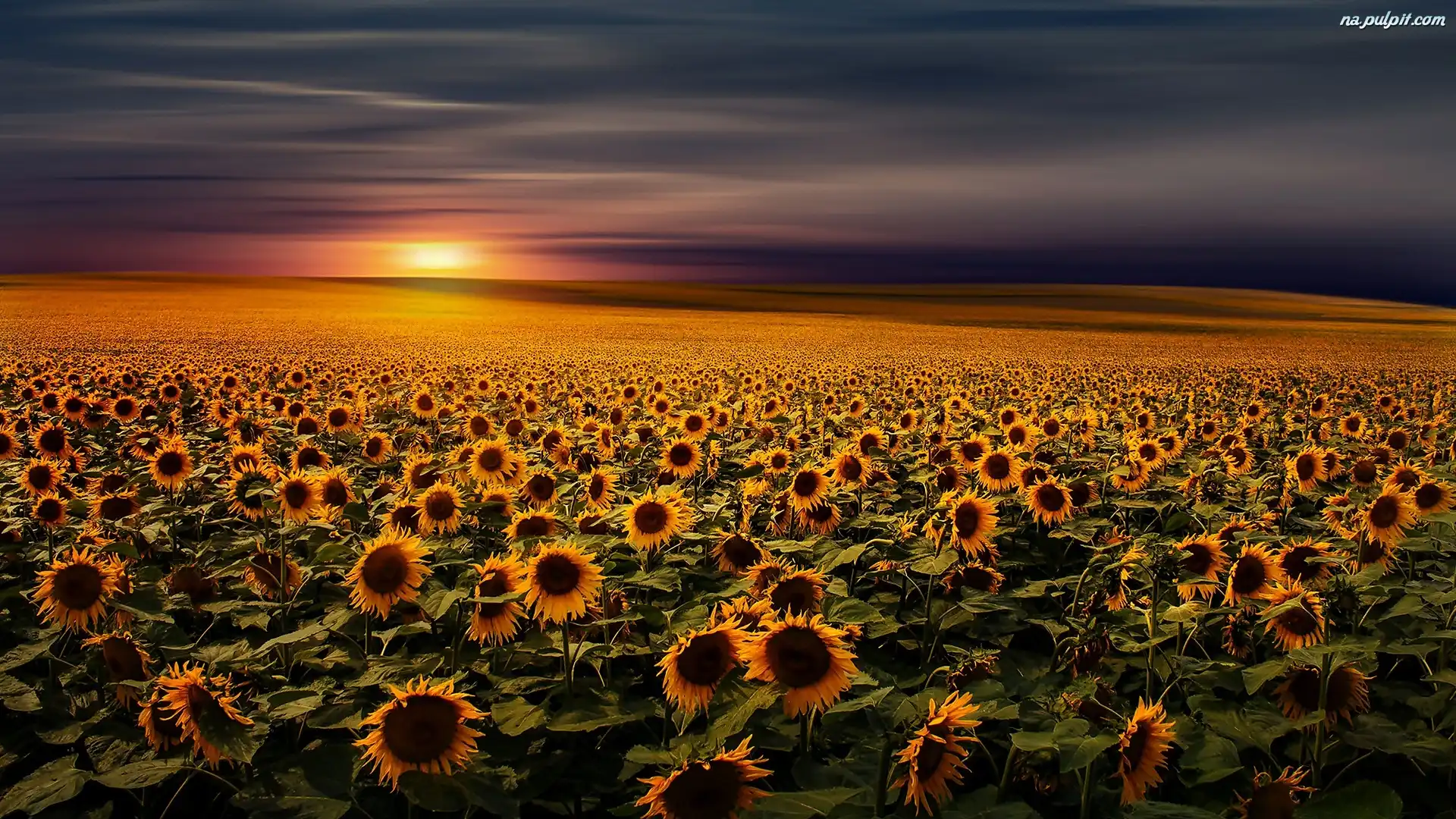Słońca, Słoneczniki, Pole, Wschód