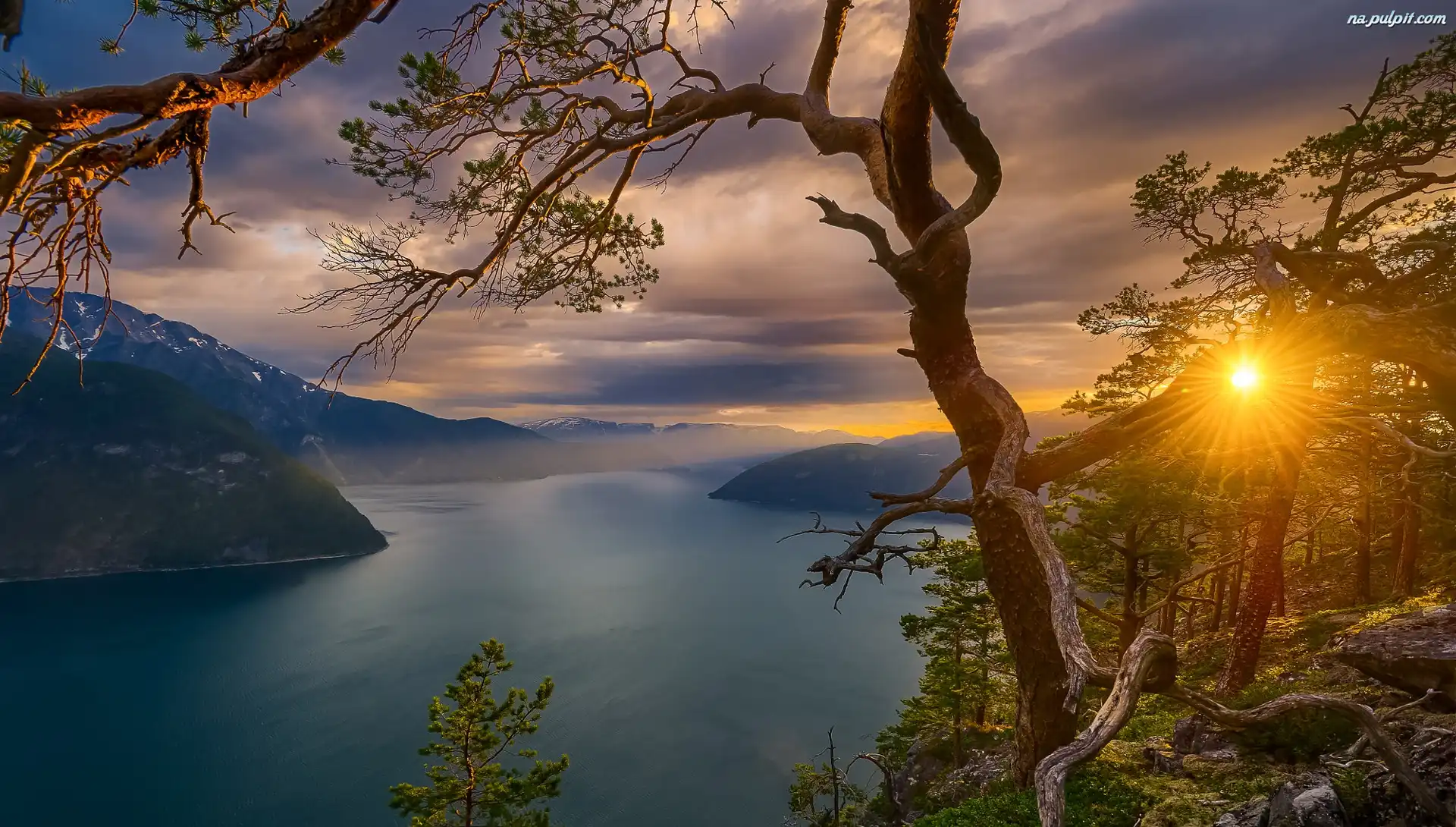 Promienie Słońca, Mgła, Drzewa, Fiord, Góry, Norwegia Na Pulpit