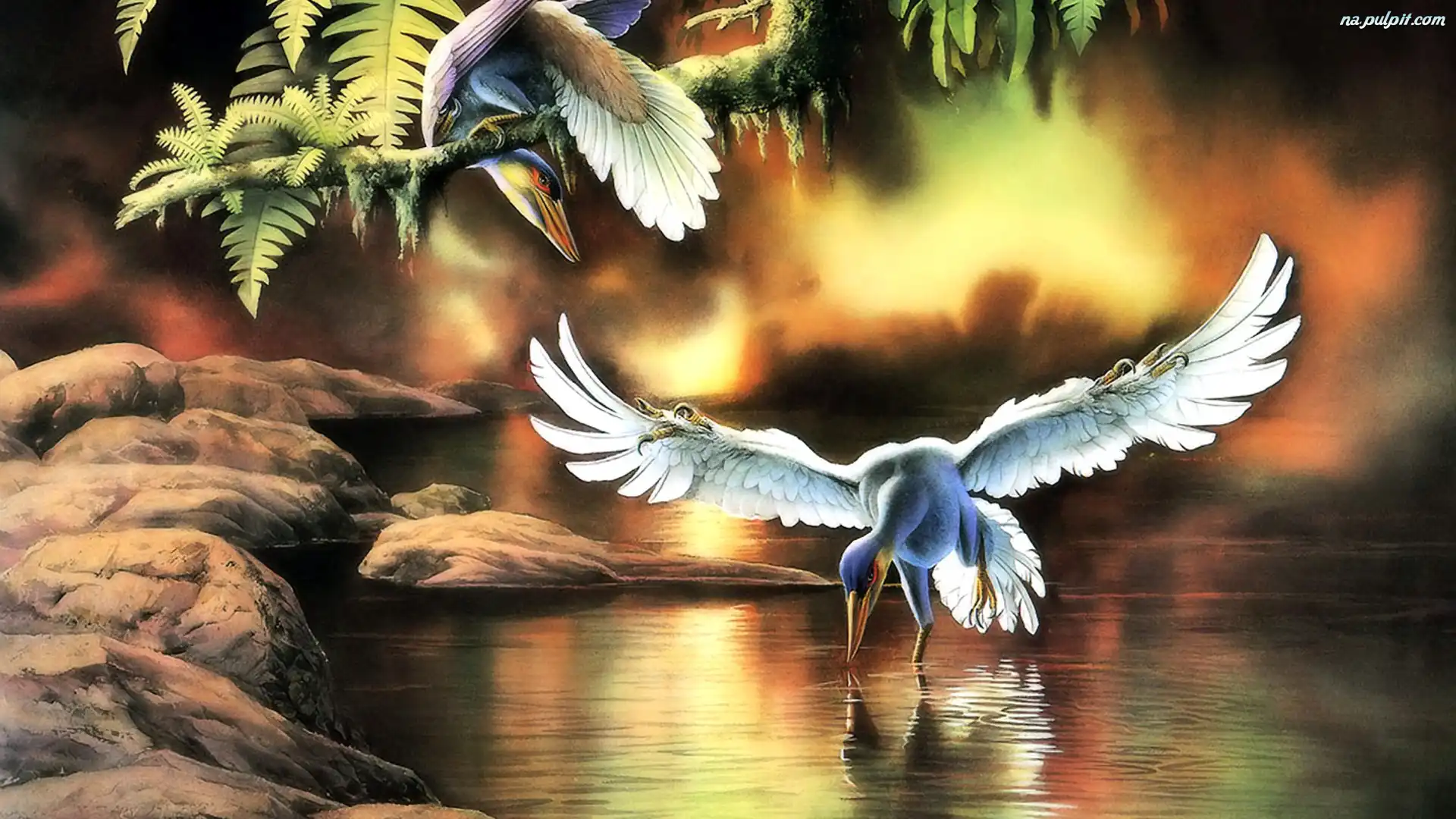 Słońca, Woda, Ptaki, Zachód
