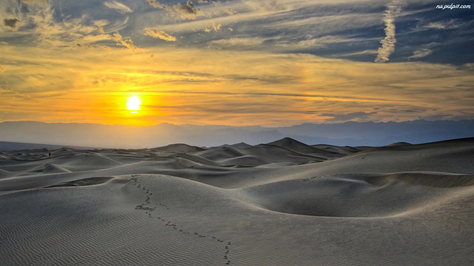 Słońca, Ślady, Pustynia, Zachód Na Pulpit