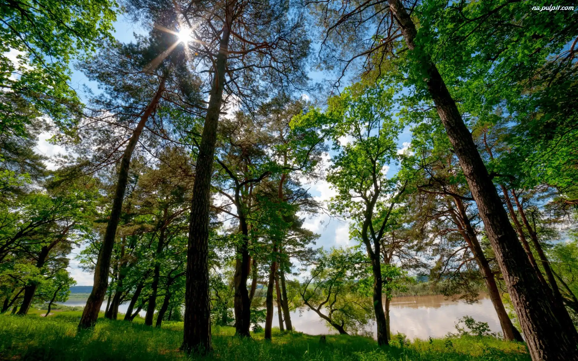 Słońca, Las, Rzeka, Promienie