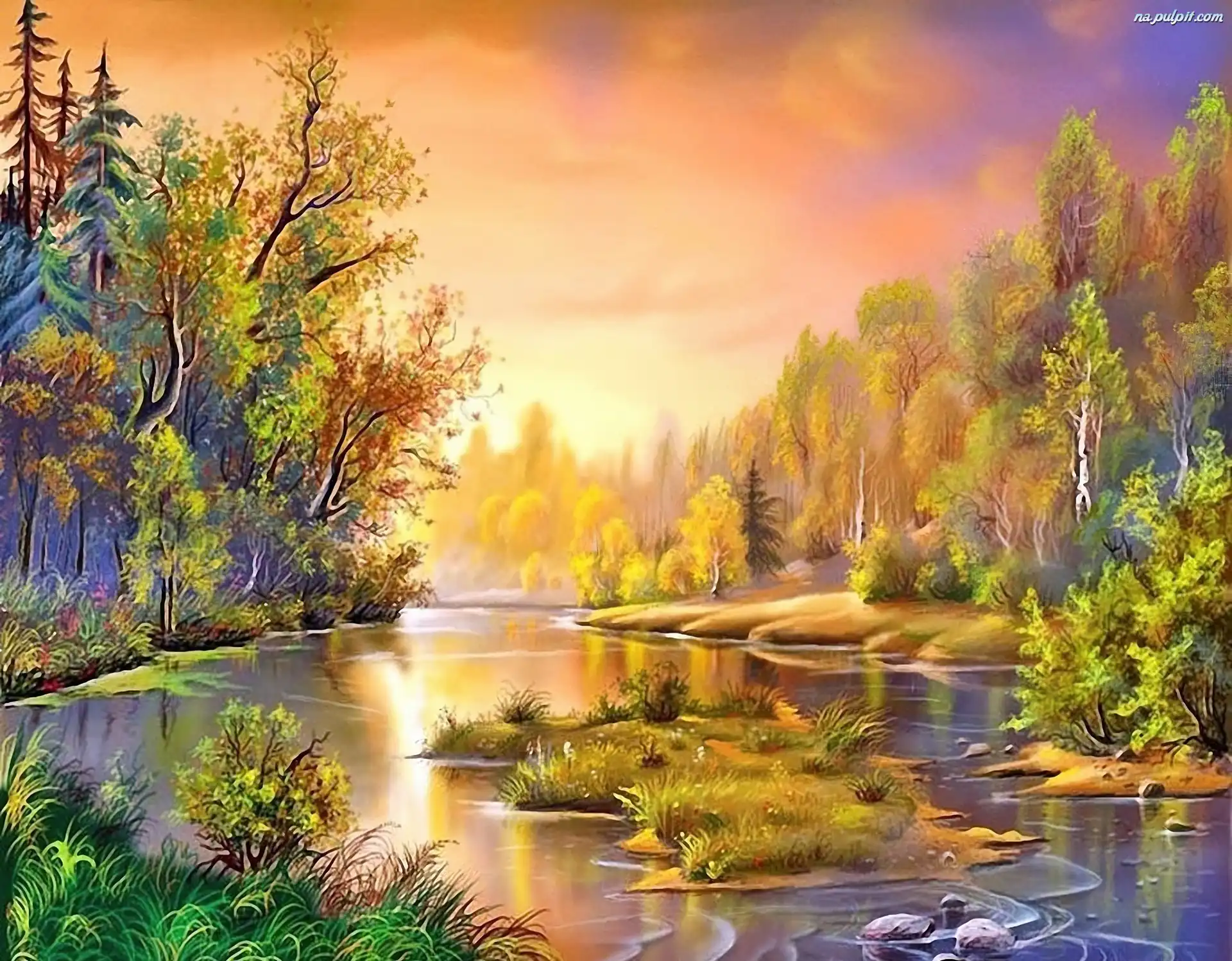 Słońca, Las, Rzeka, Zachód Na Pulpit