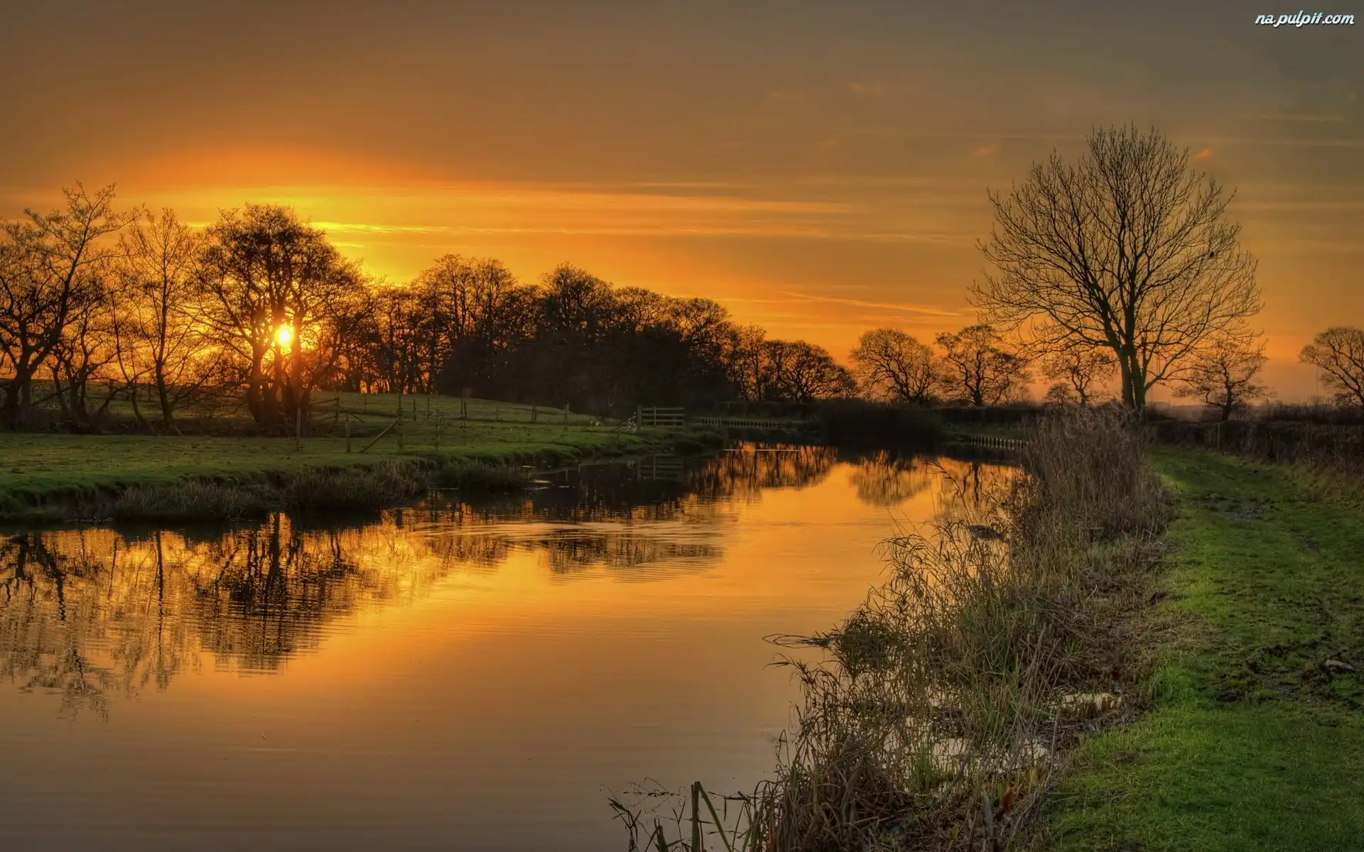Słońca, Pola, Rzeka, Zachód Na Pulpit
