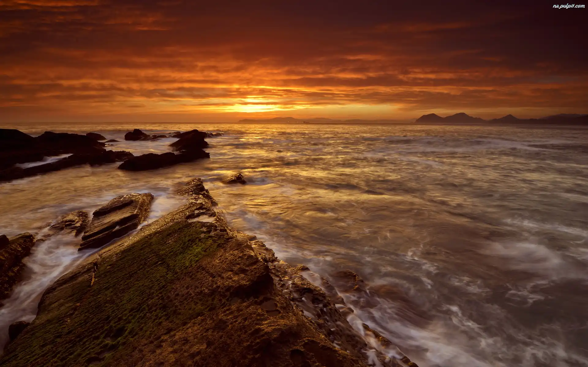 Słońca, Morze, Skały, Zachód Na Pulpit