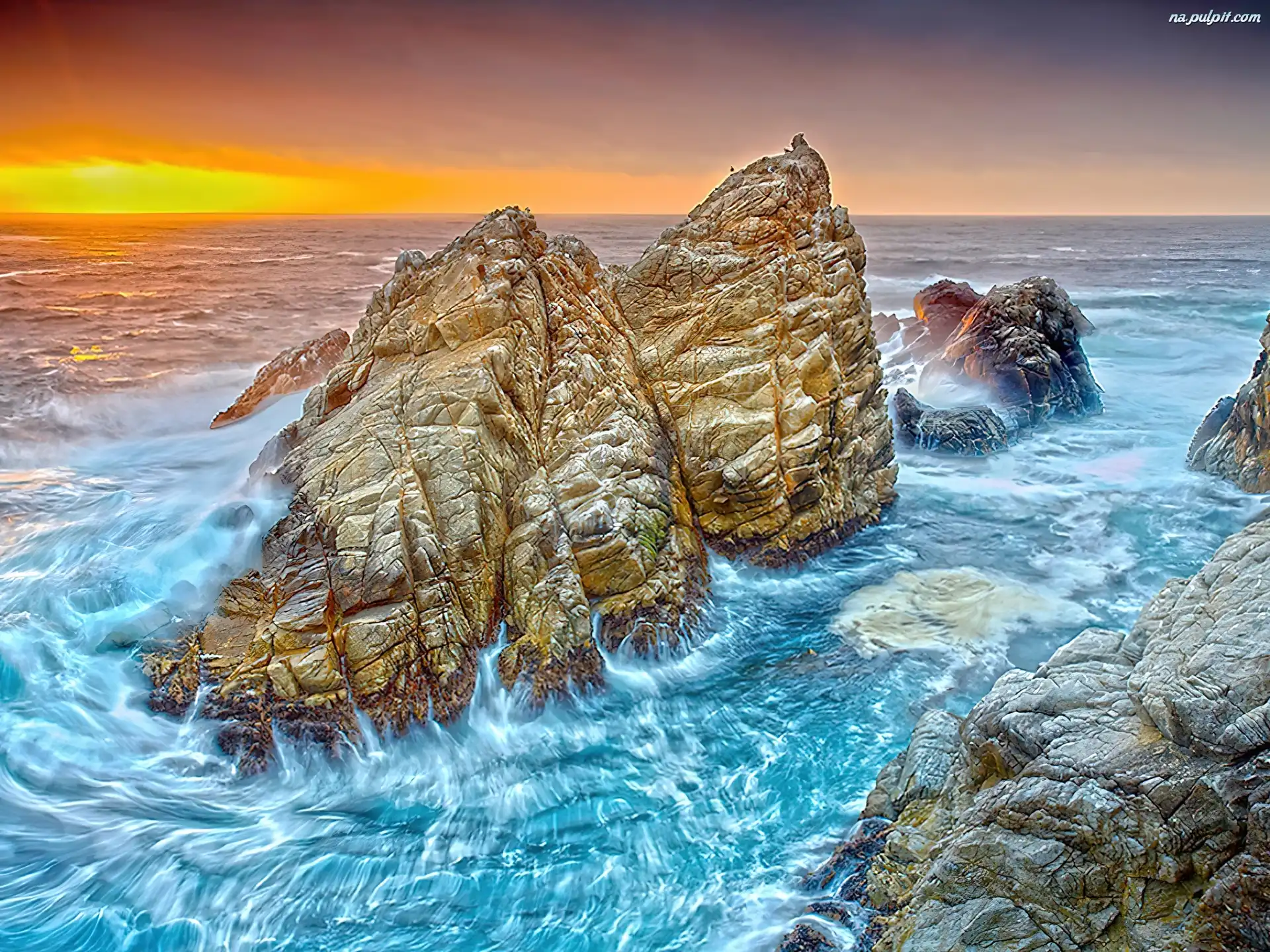 Słońca, Morze, Skały, Zachód Na Pulpit