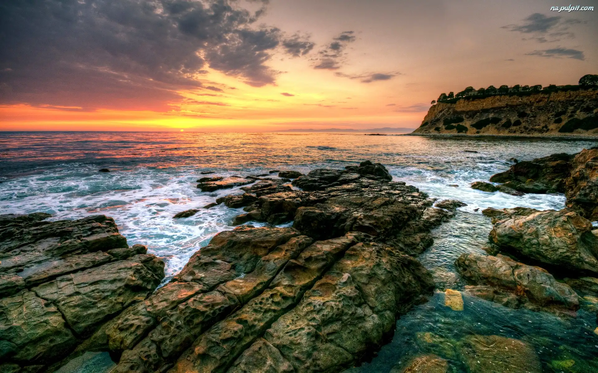 Słońca, Morze, Skały, Zachód Na Pulpit