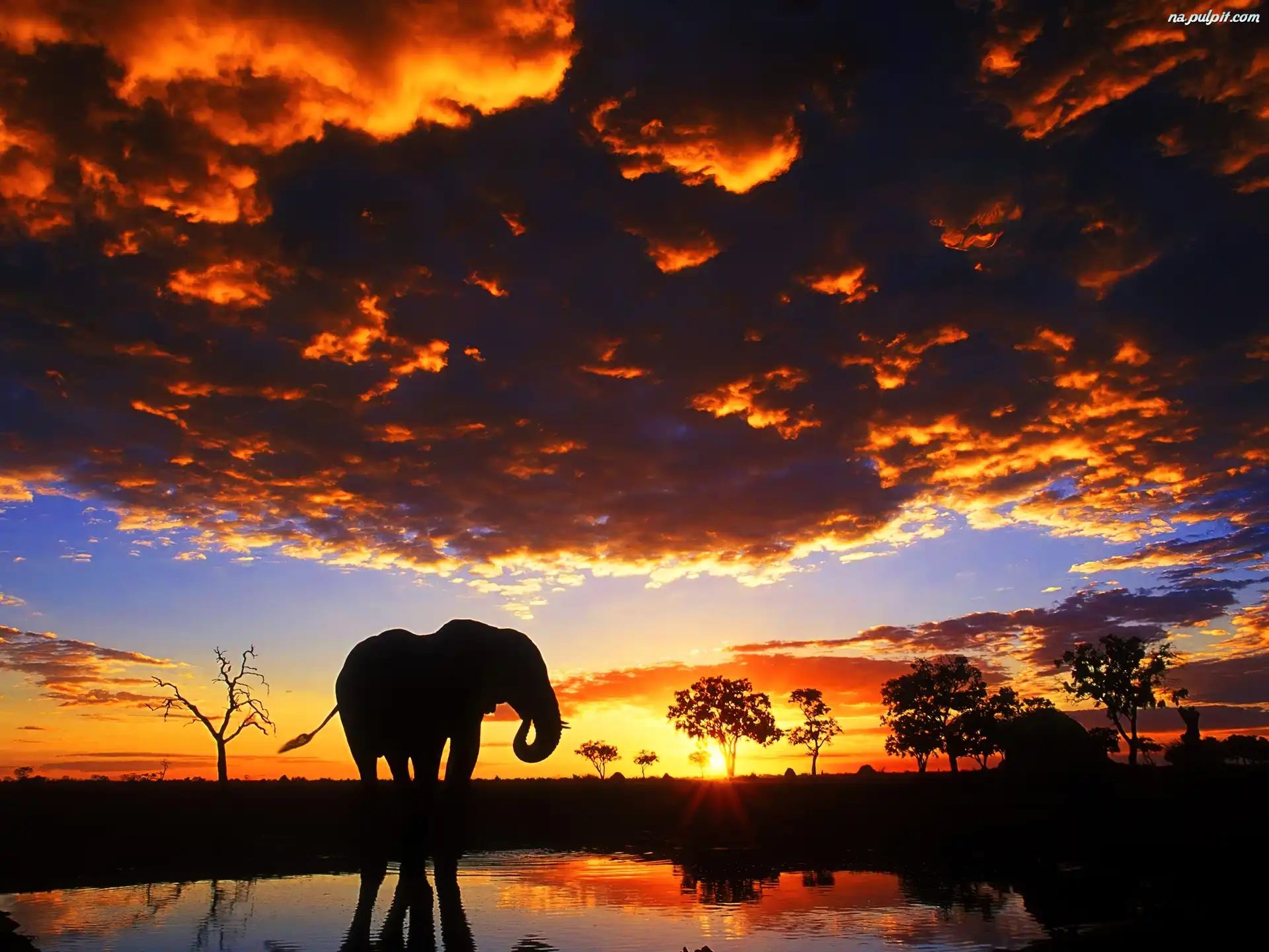 Słońca, Wodopój, Słoń, Zachód