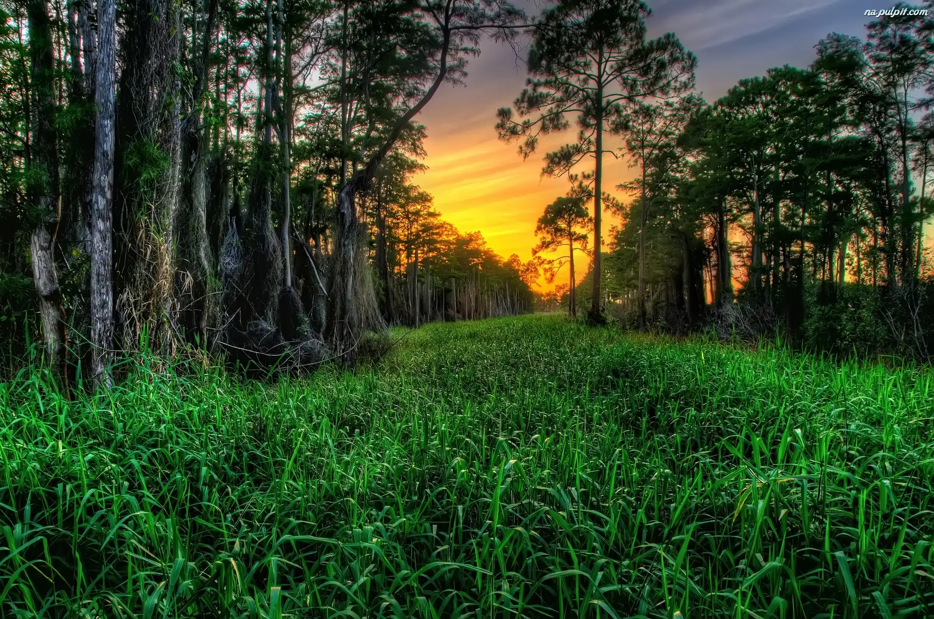 Słońca, Trawa, Las, Stary, Zachód Na Pulpit