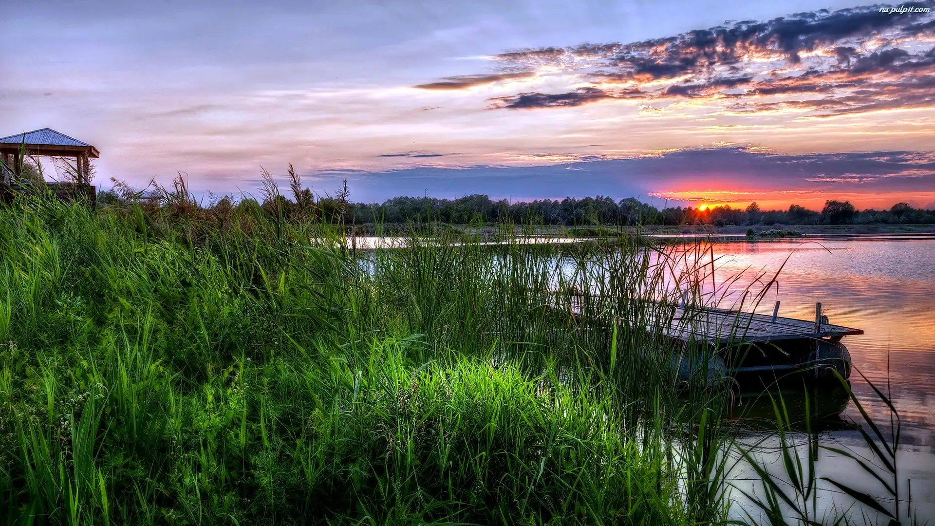 Słońca, Jezioro, Szuwary, Zachód Na Pulpit