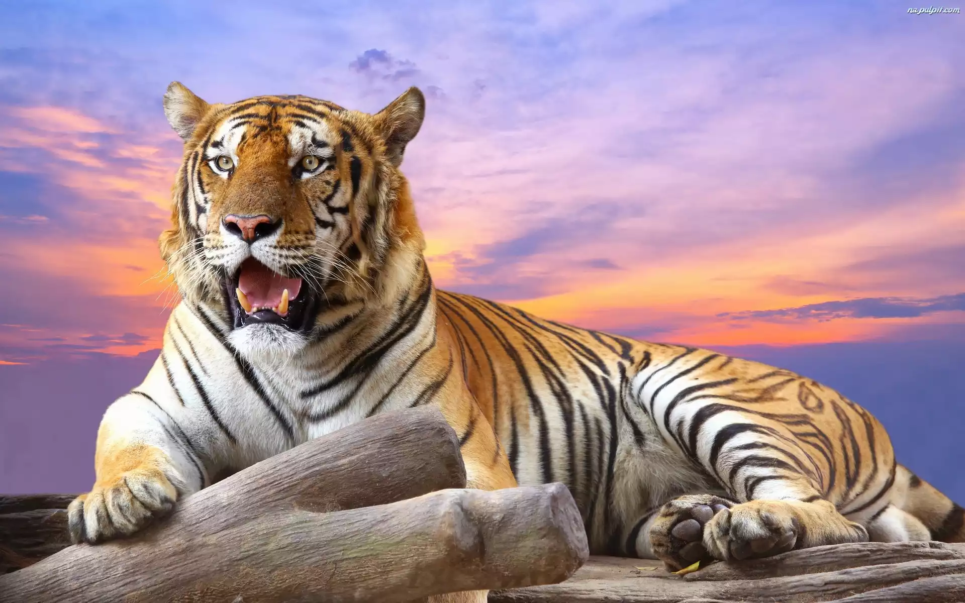 Słońca, Drzewo, Tygrys, Zachód Na Pulpit