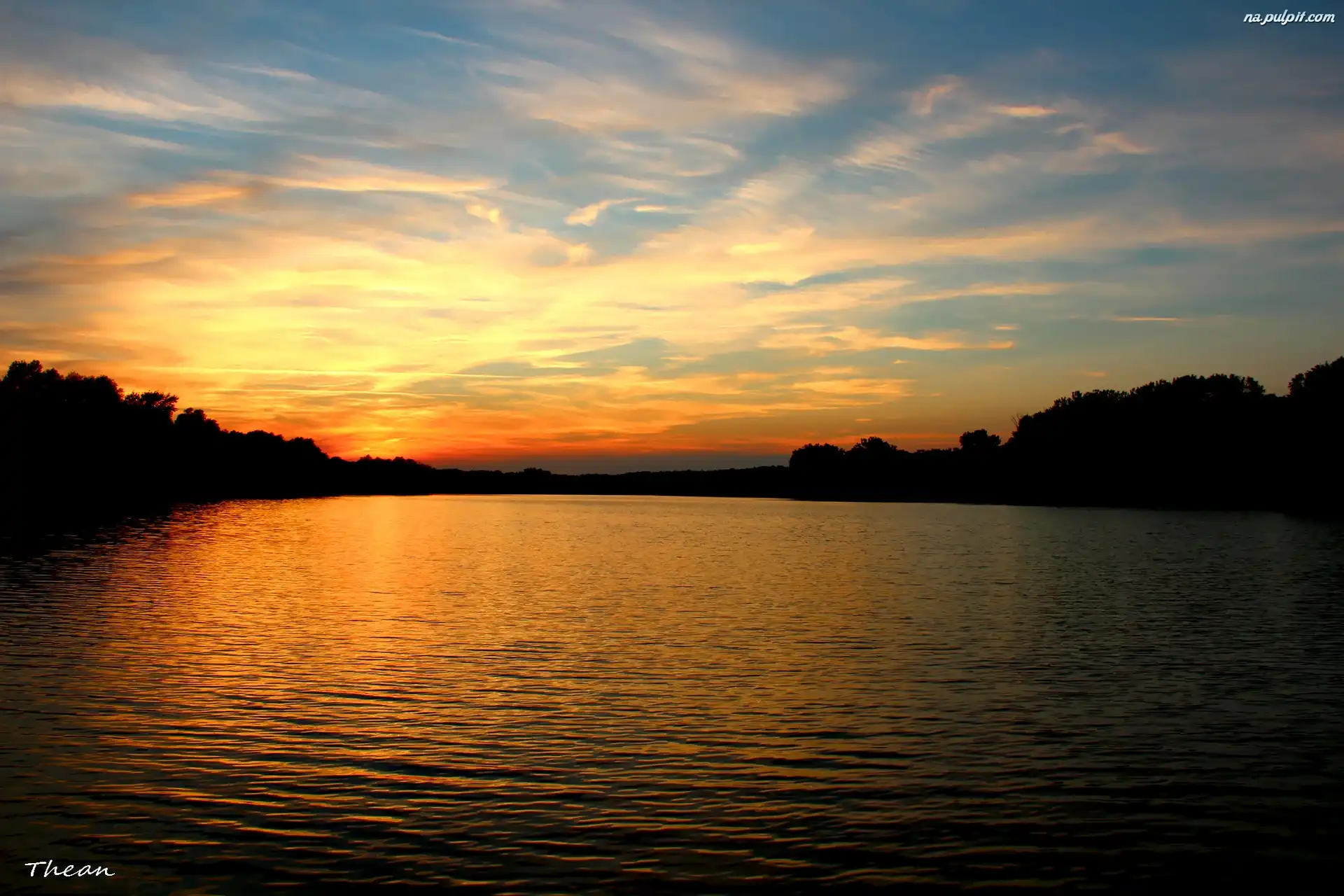 Słońca, Jeziorem, Nad, Wieczór, Zachód Na Pulpit