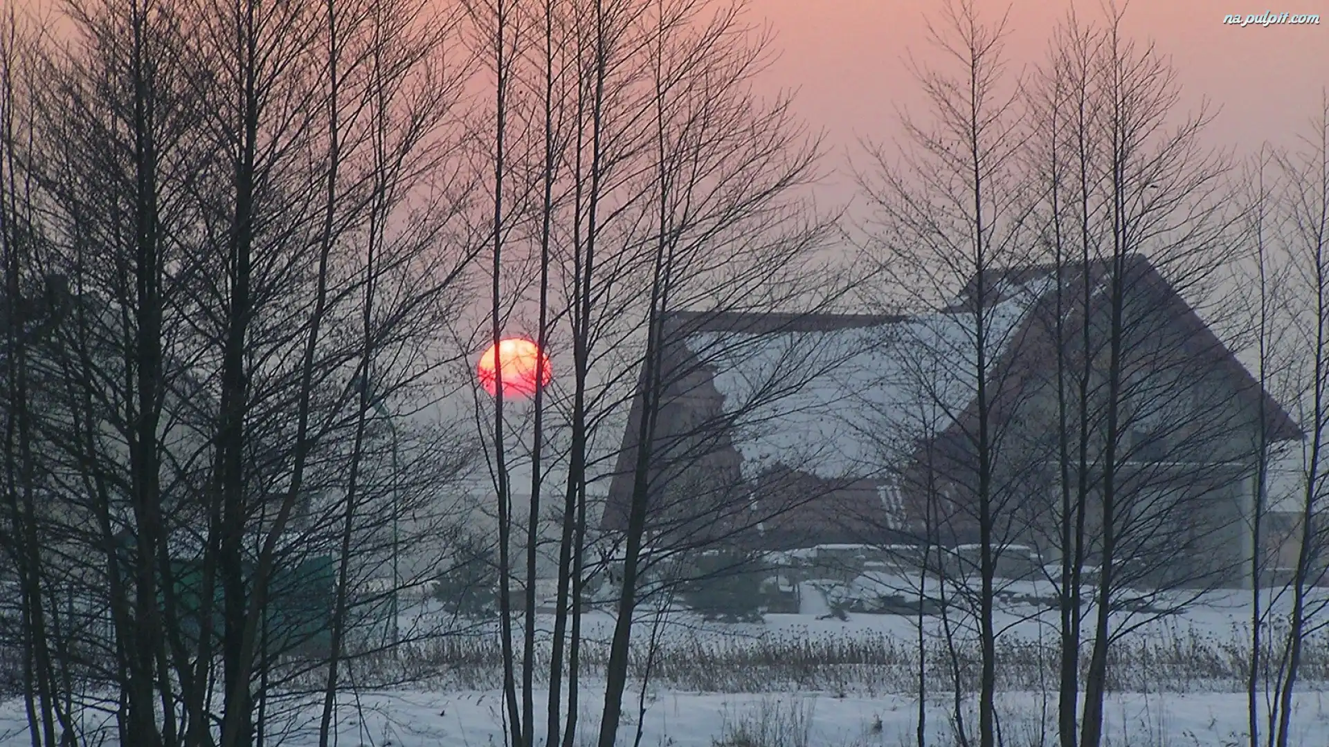 Słońca, Zima, Drzewa, Nad, Wschód, Wsią Na Pulpit