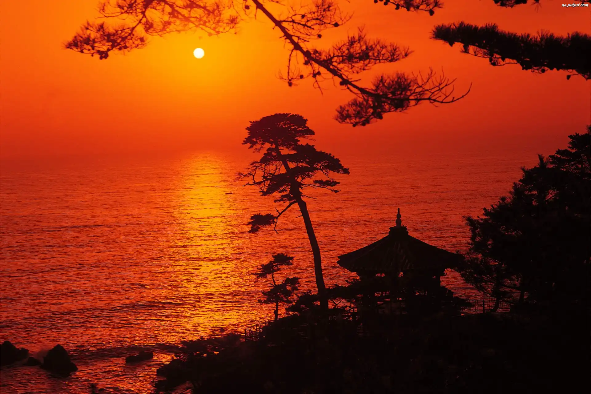 Słońca, Korei, Wybrzeże, Zachód Na Pulpit