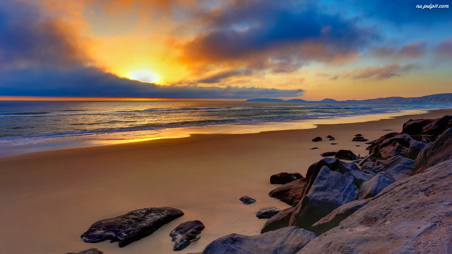 Słońca, Skały, Plaża, Wybrzeże, Zachód Na Pulpit