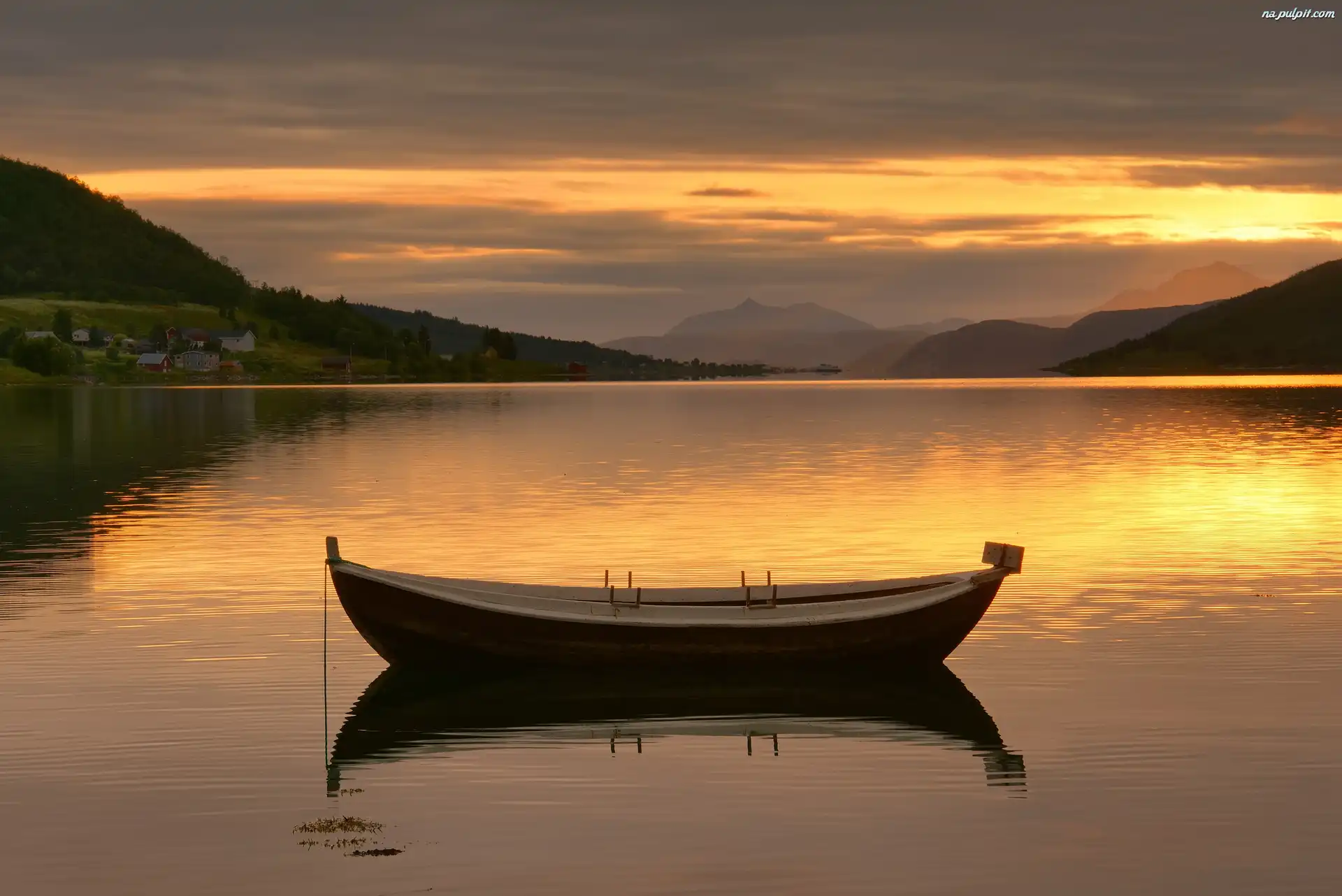 Łódka, Wzgórza, Wschód słońca, Rzeka Na Pulpit