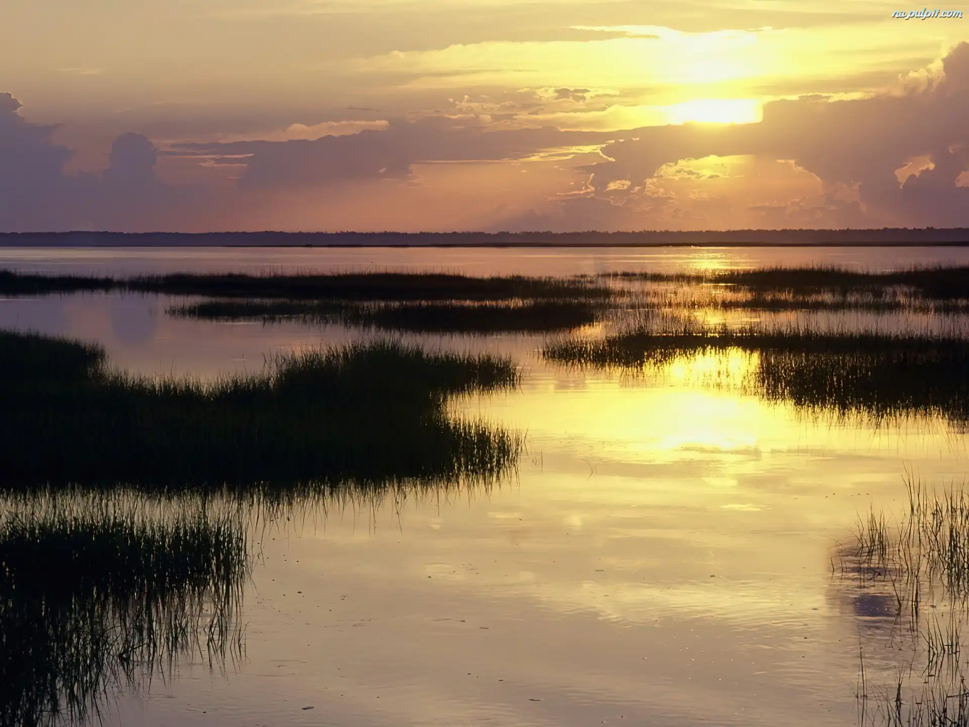 Zachód słońca, Delfiny Żabiściek Pływający, Bagno Słońca, Morza, Tafla, Zachód Promienie słońca, Trawy, Bagno, Zaśnieżone, Drzewa Zachód Słońca, Plaża, Fale Rośliny, Mokradła, Drzewa Zachód Śłońca, Chmura, Niebo Słońca, Morze, Tropiki, Zachód Drzewa, Las, Mokradła Mazury, Nad, Słońca, Zachód, Jeziorem Morze, Zachód Słońca, Chmura Bagna, USA, Georgia Jesień, Drzewa, Bagna, Woda Bagno, Las