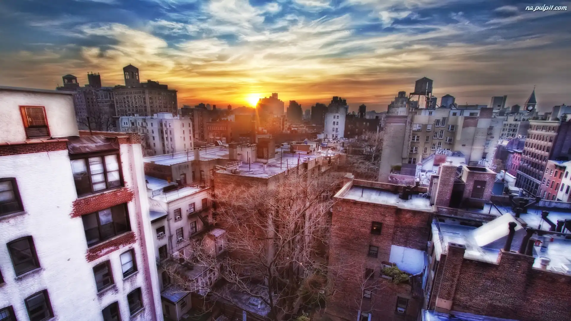 Słońca, Drapacze, Chmur, Nowy, Zachód, Jork Na Pulpit