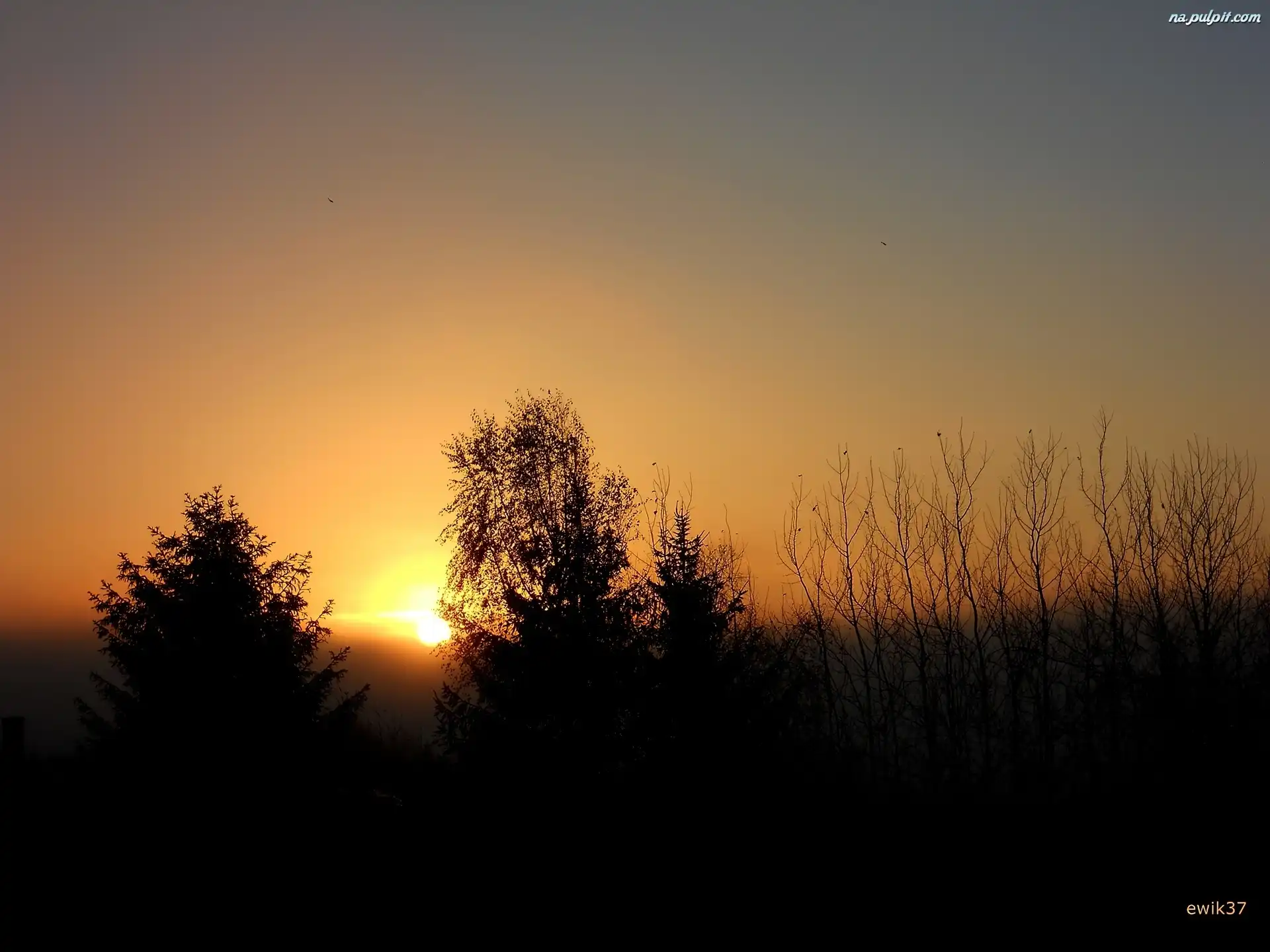 Zachód Słońca, Drzewa Na Pulpit