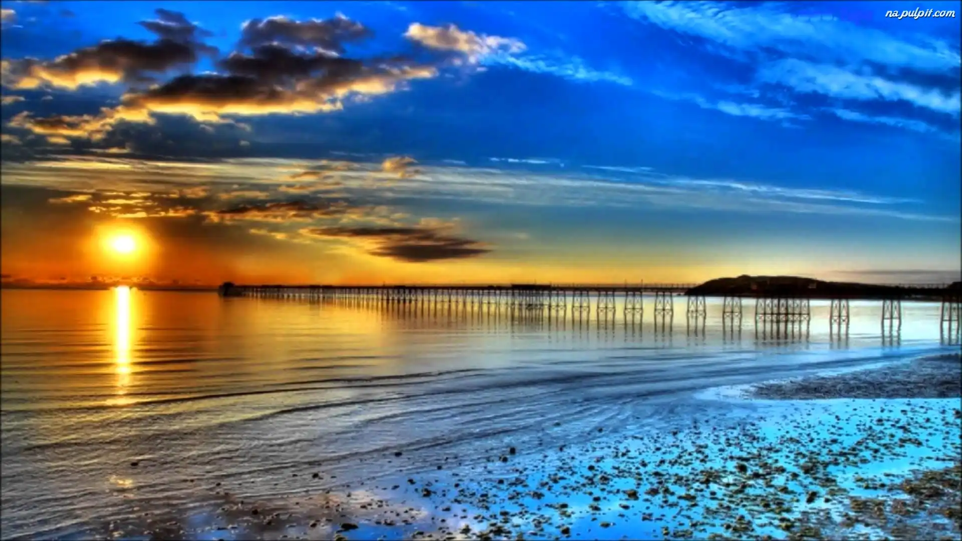 Słońca, Plaża, Molo, Chmury, Zachód, Morze Na Pulpit