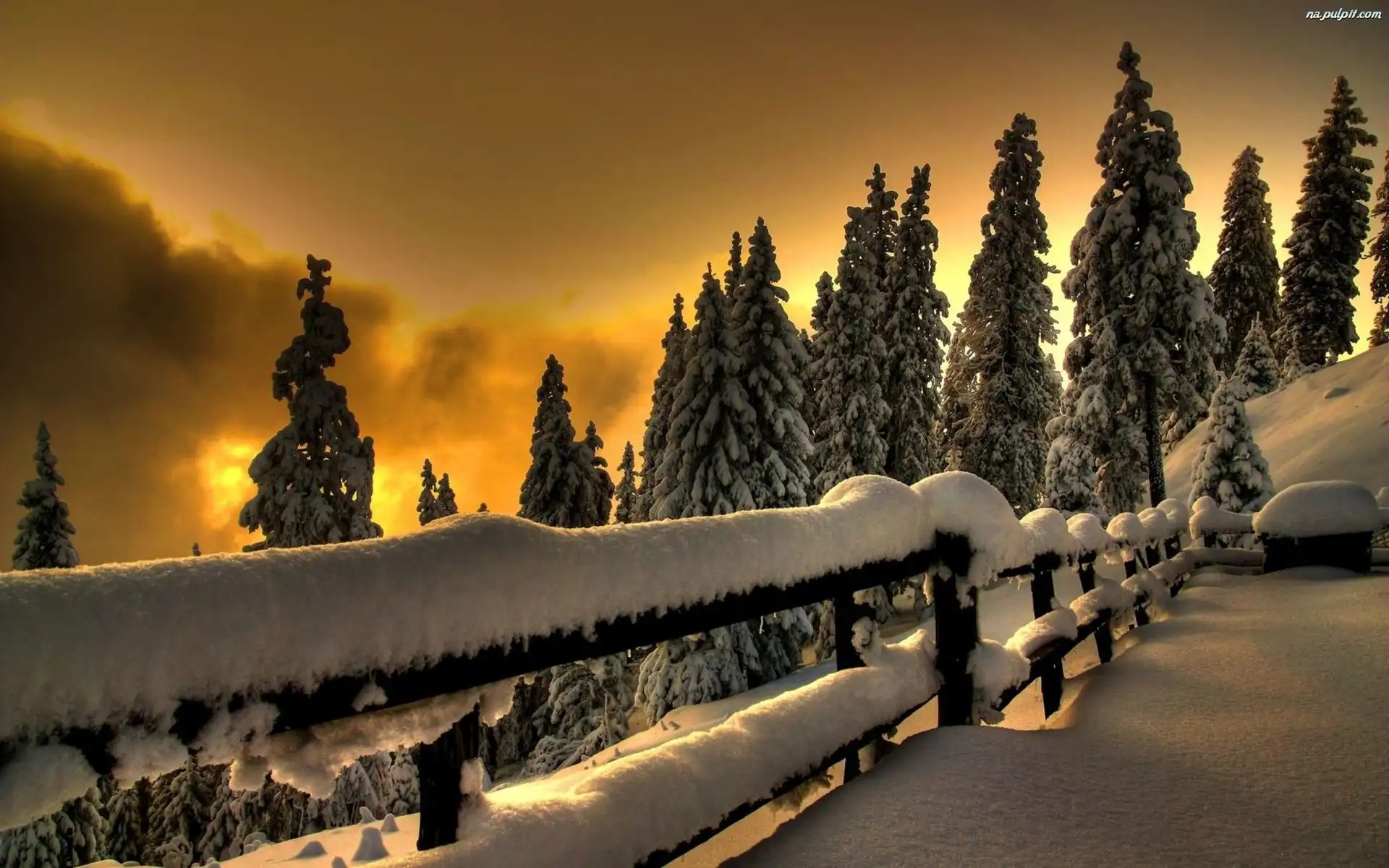 Słońca, Ośnieżony, Taras, Chmury, Zachód, Zima Na Pulpit