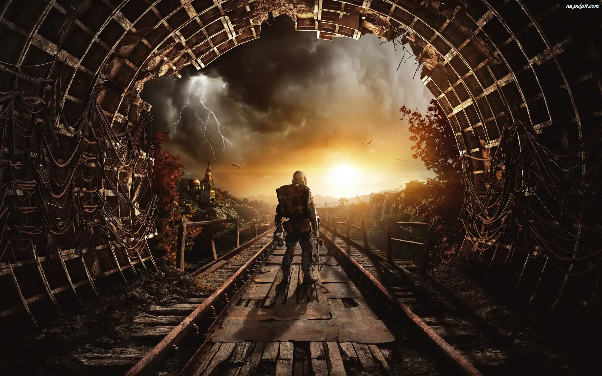 Zachód słońca, Tunel, Metro Exodus, Gra, Tory
