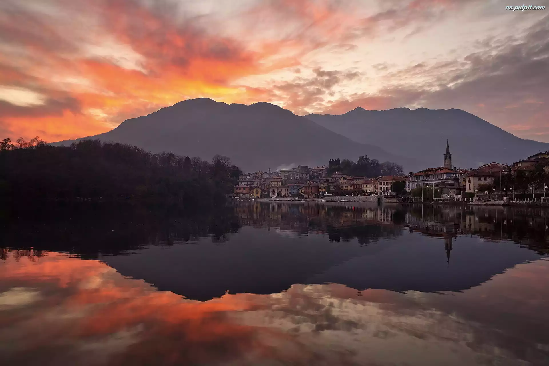 Słońca, Mergozzo, Włochy, Jezioro, Zachód, Miasto Na Pulpit
