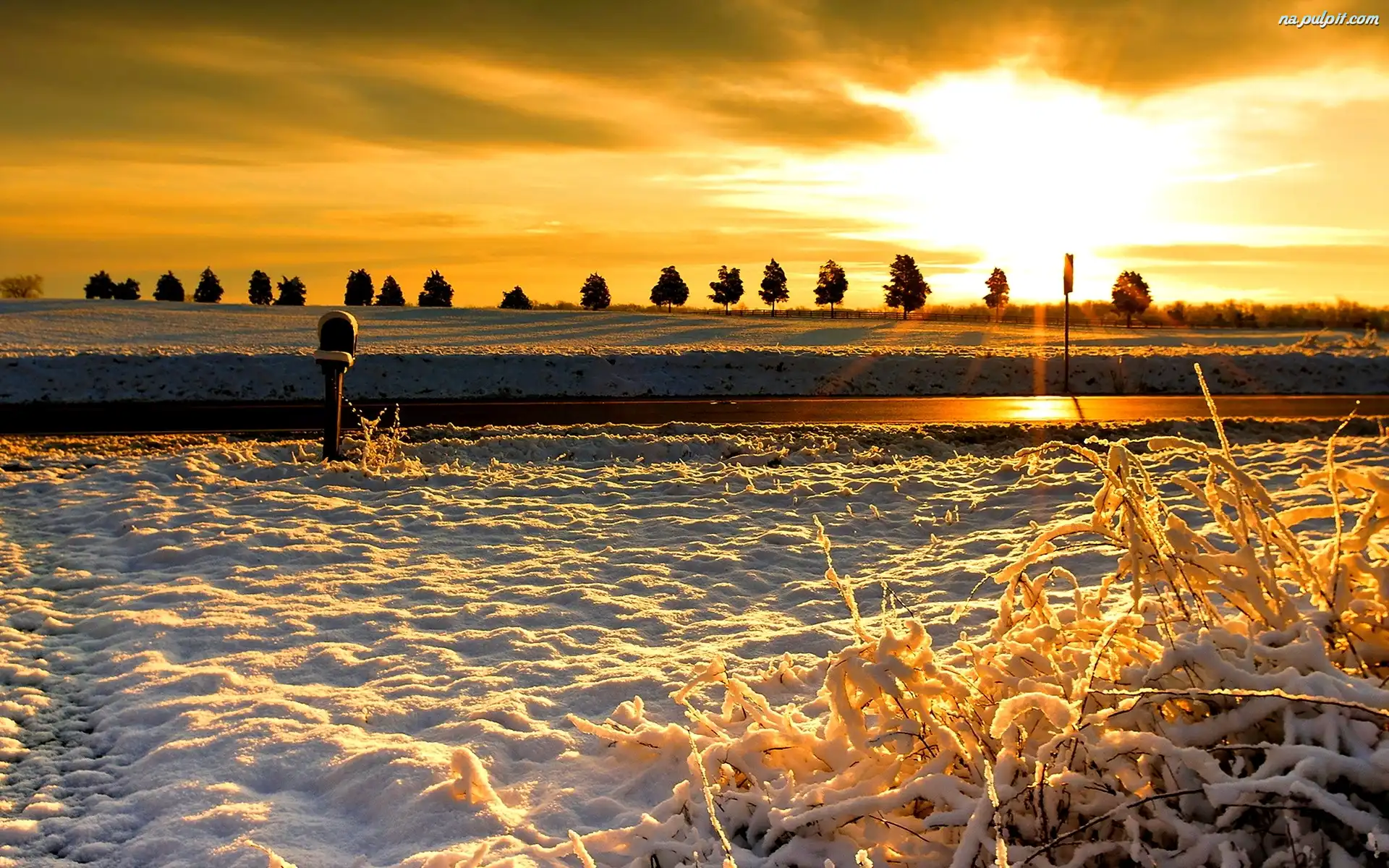 Słońca, Śnieg, Zima, Droga, Zachód, Pola Na Pulpit