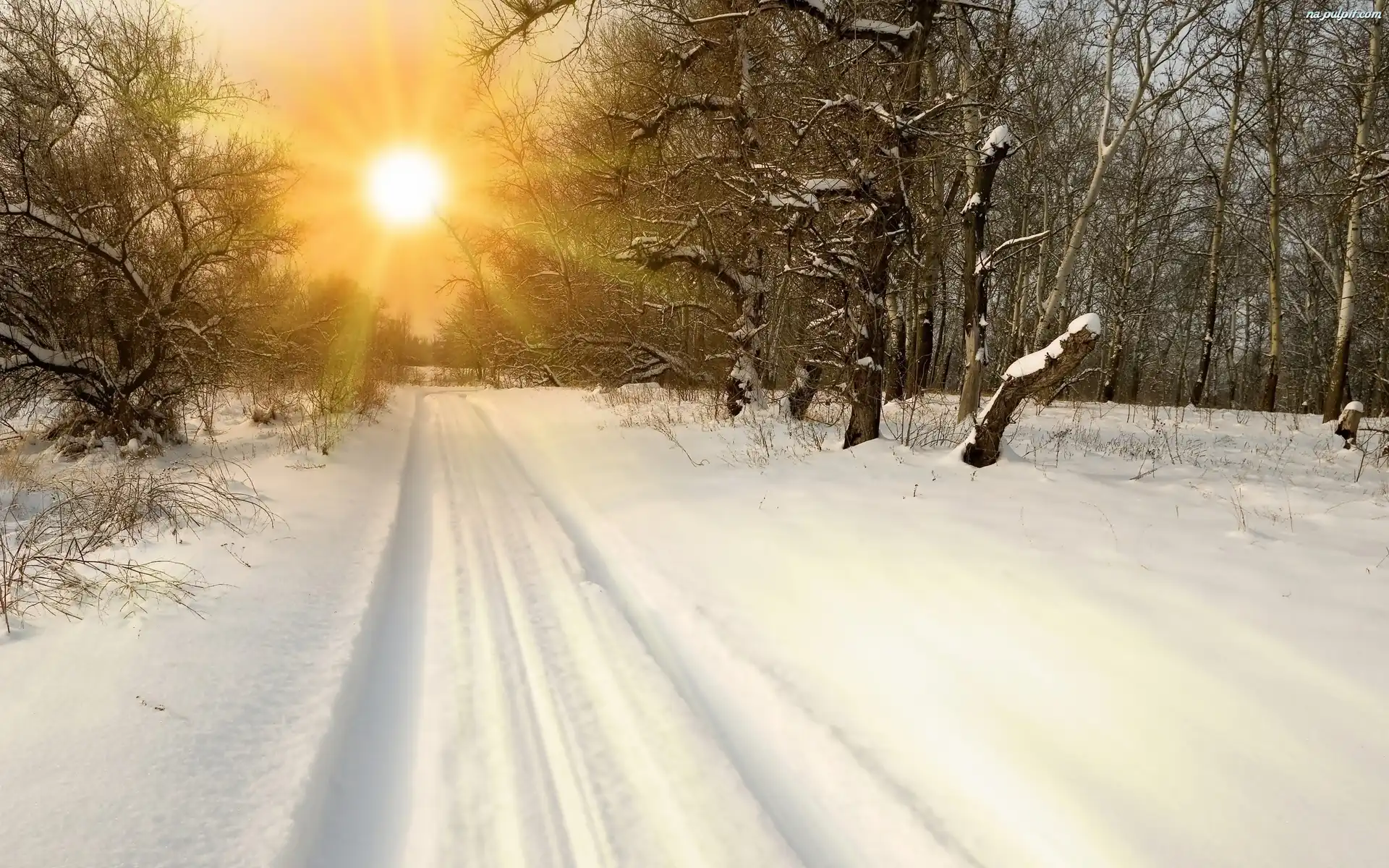 Słońca, Droga, Zaśnieżona, Promienie Na Pulpit