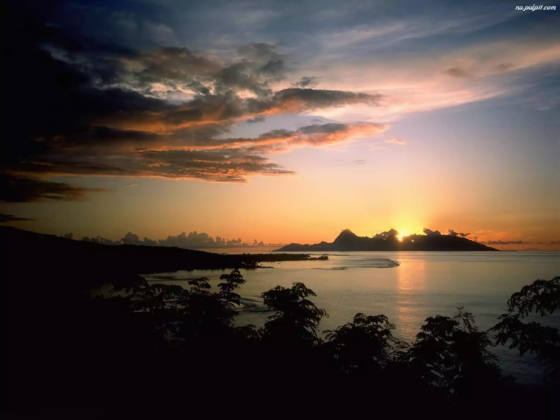 Drzewo, Zachód Słońca Ocean Kwiatki, Morze, Łódka Laguna, Wyspa, Rogal Chmura, Francja, Zamek Wyspa, Zachód Słońca Nadmorski, Widok Kamienie, Góry, Morze Góra, Zachody Śłońca Chmury, Droga, Kłębiaste Zachód Słońca Chmury dwie góry, Morze Zachód Śłońca, Chmura, Niebo