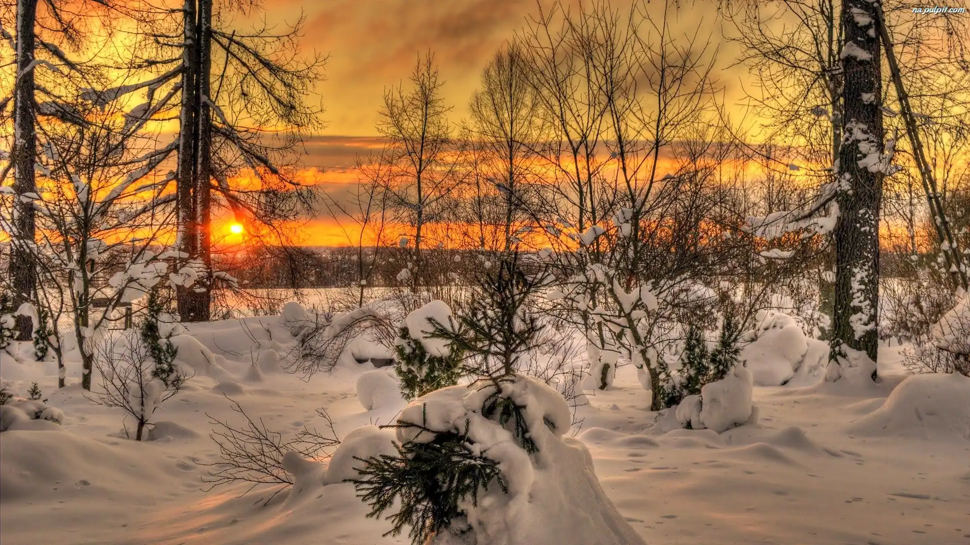 Słońca, Drzewa, Zima, Zachód Na Pulpit