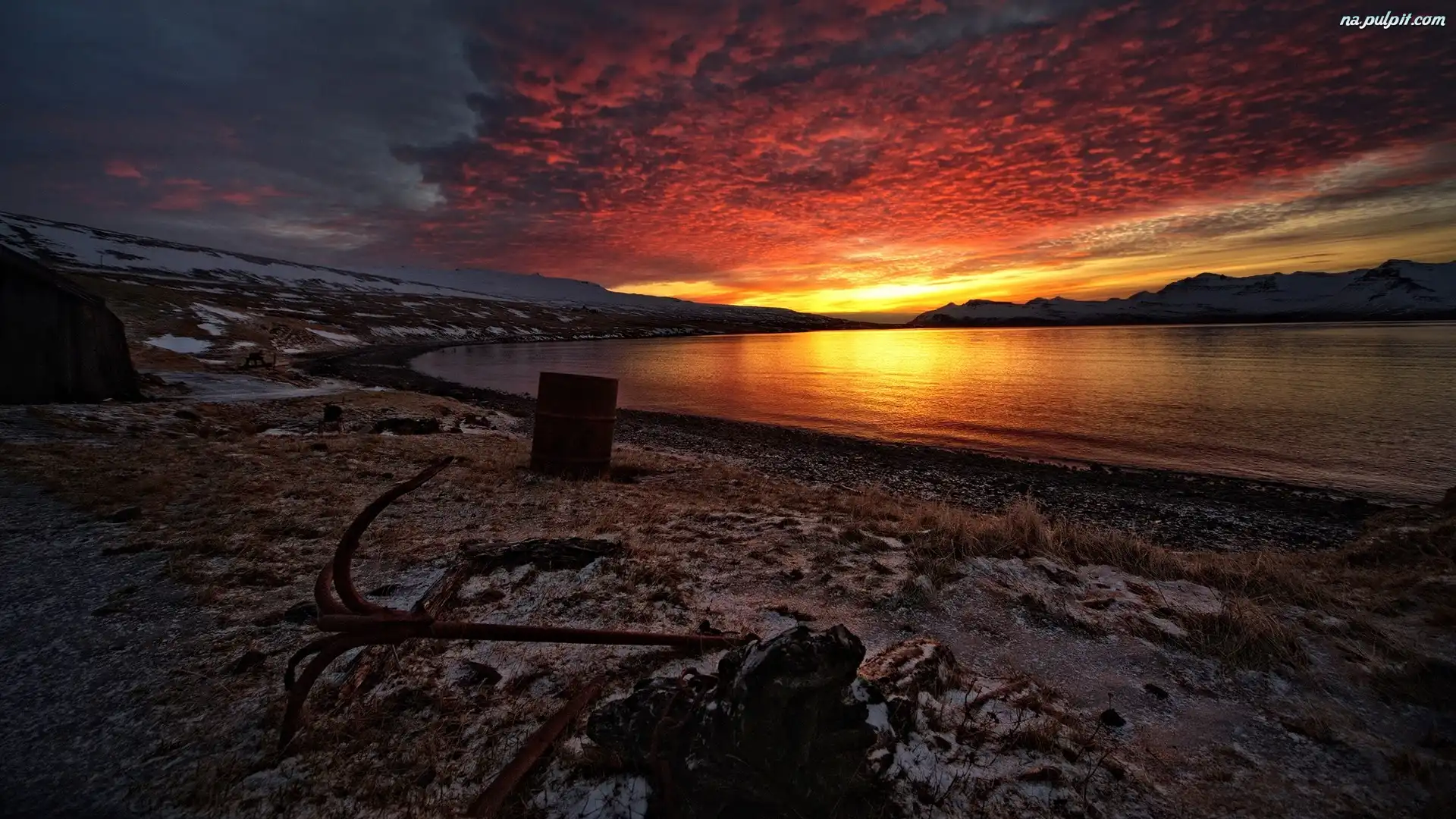 Słońca, Jezioro, Zima, Zachód Na Pulpit