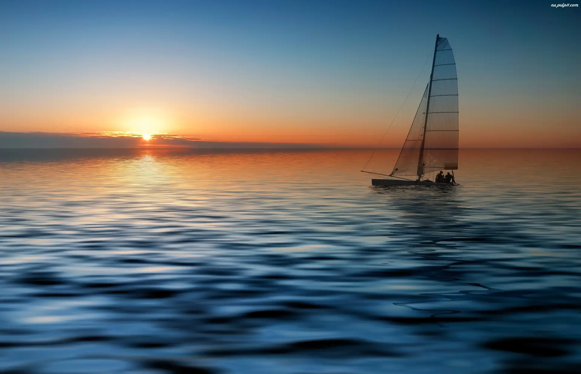 Słońce, Morze, Żaglówka, Zachodzące Na Pulpit