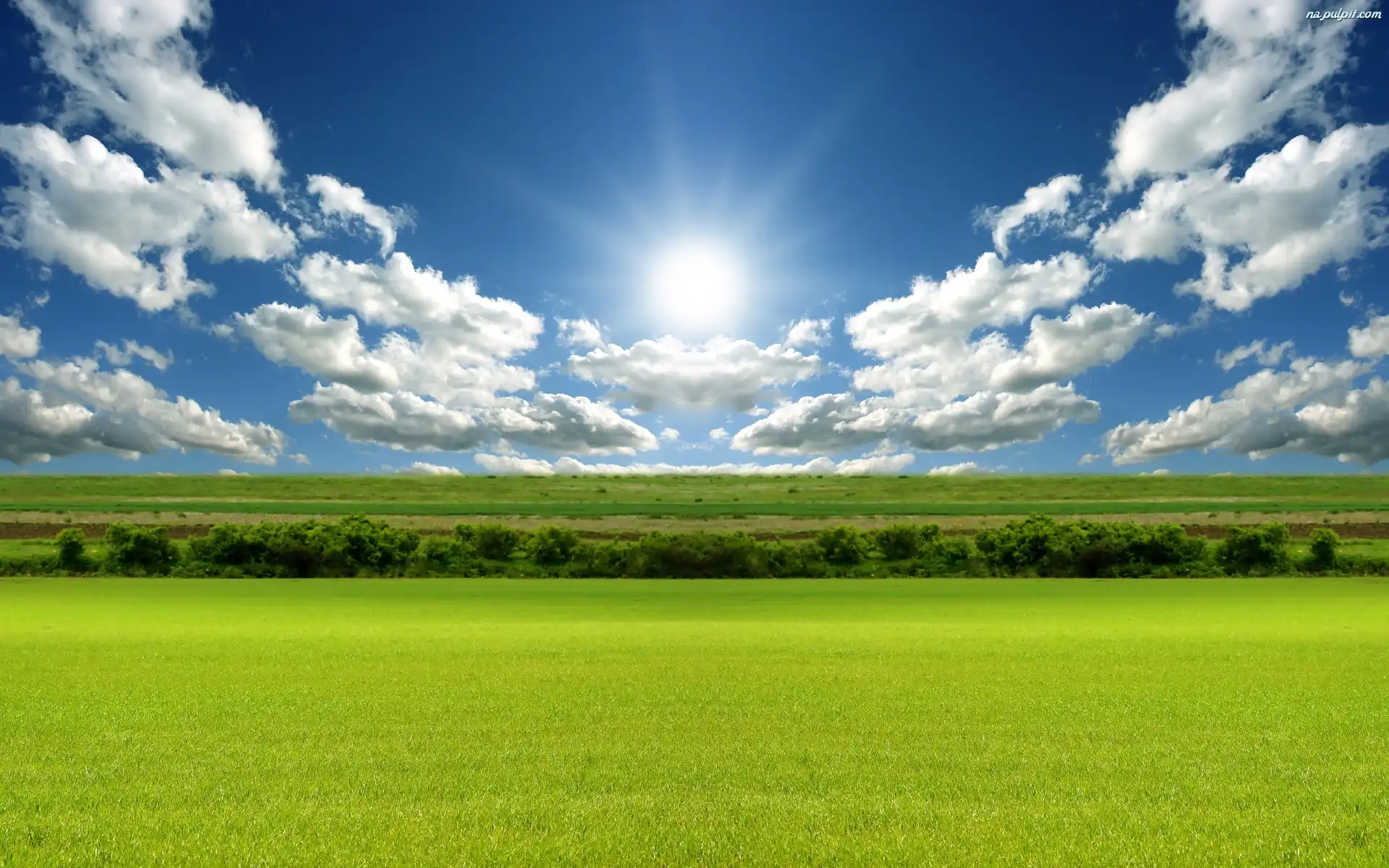 Słońce, Drzewa, Łąki, Chmury Na Pulpit