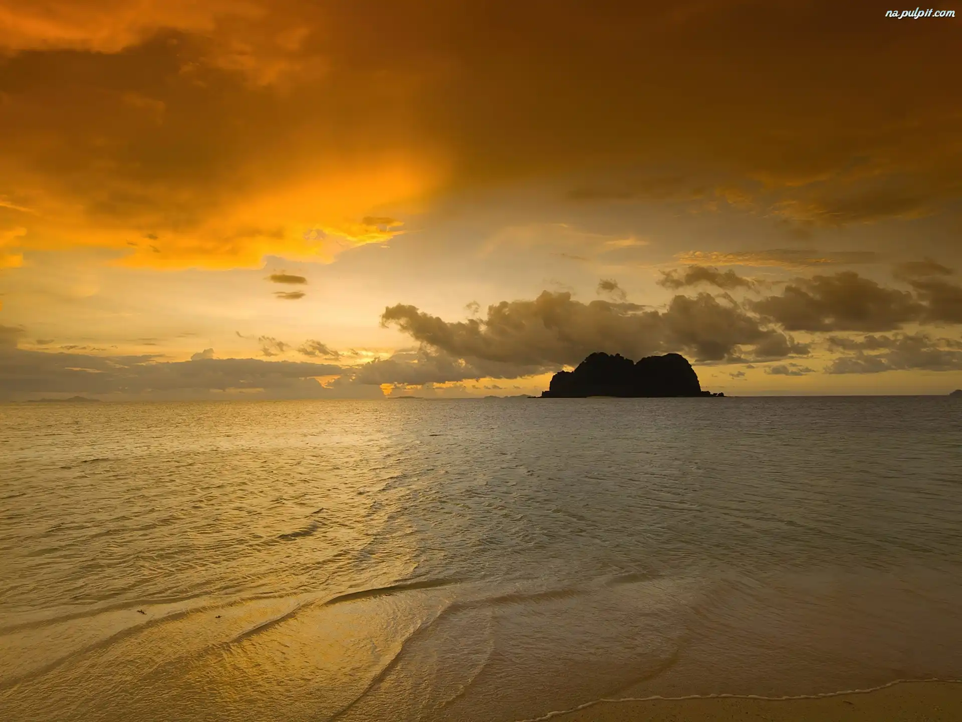 Słońce, Morze, Fale, Promienie, Chmury, Wyspa Na Pulpit