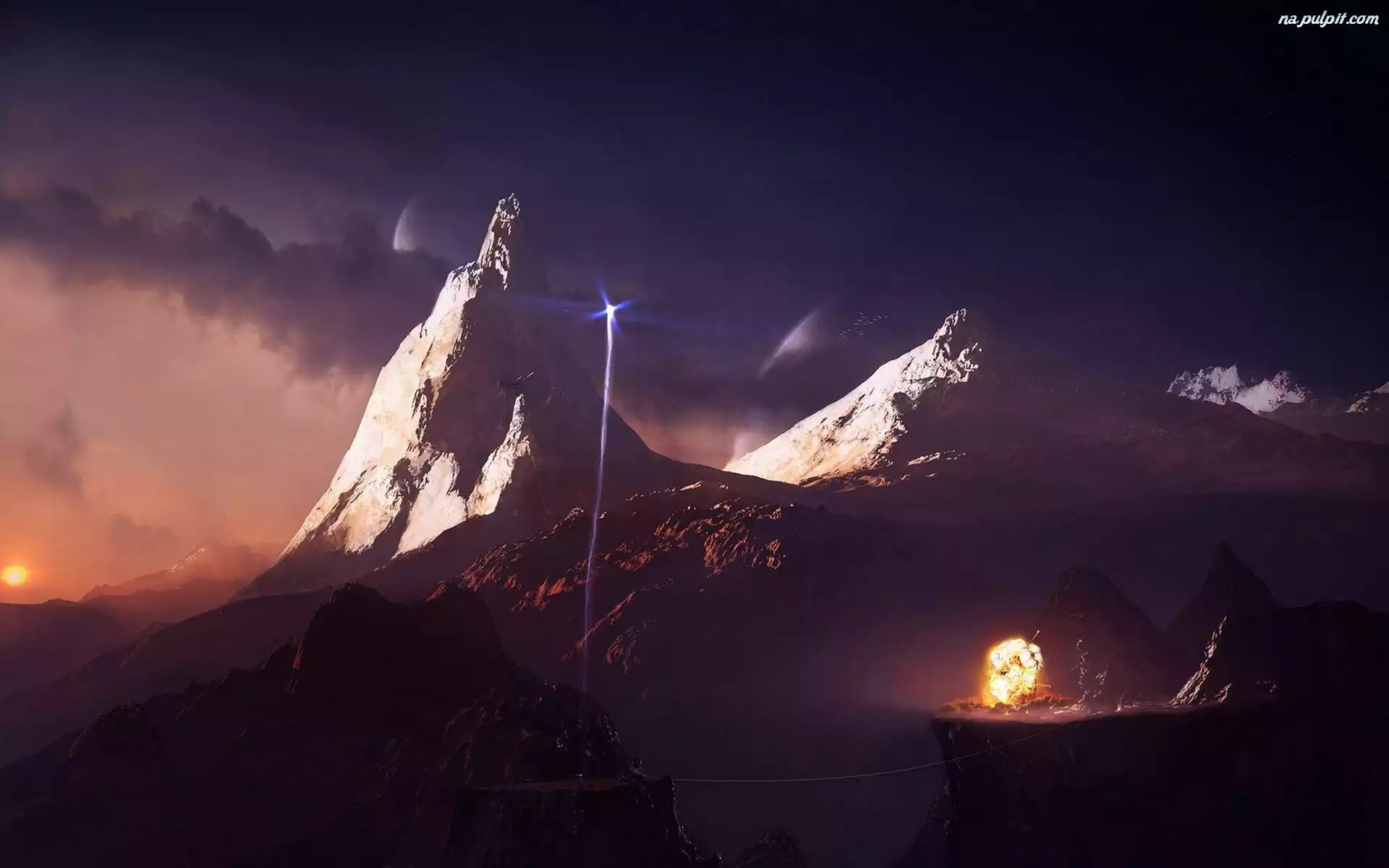 Słońce, Śnieg, Wysokość, Góry, Ogień