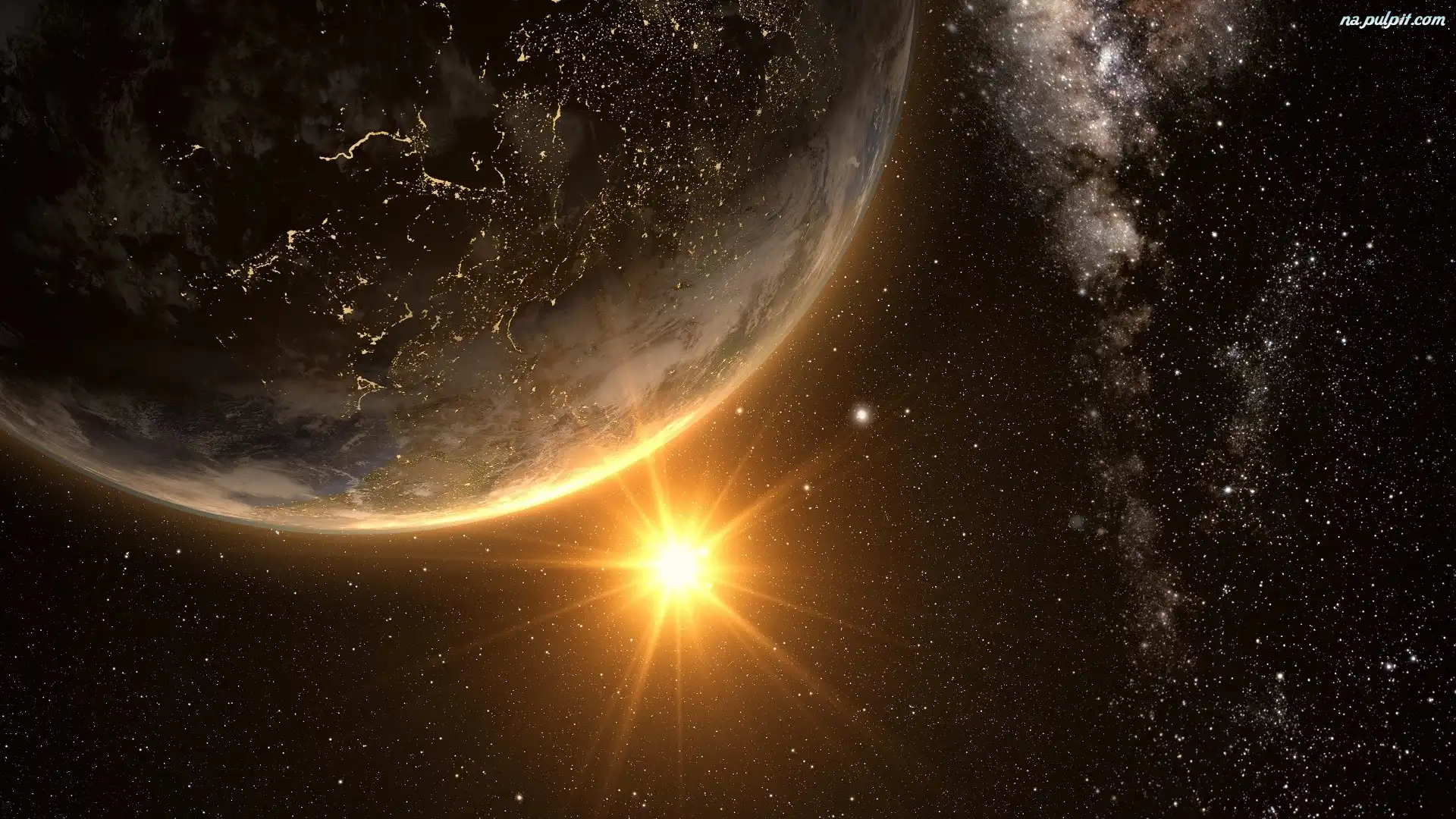Słońce, Planeta Ziemia, Kosmos, Gwiazdy Na Pulpit
