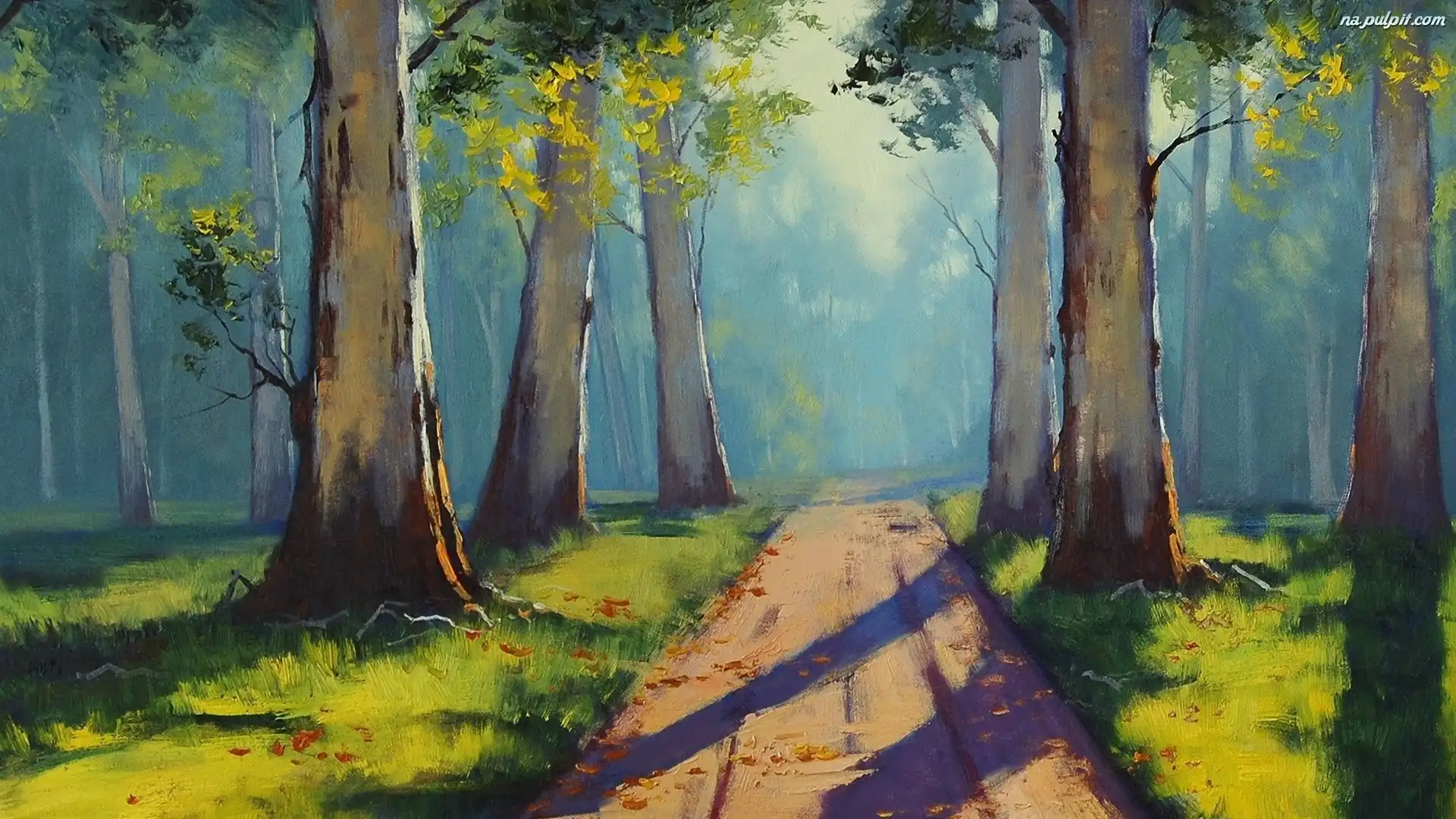 Słońce, Las, Olejny, Obraz, Droga Na Pulpit