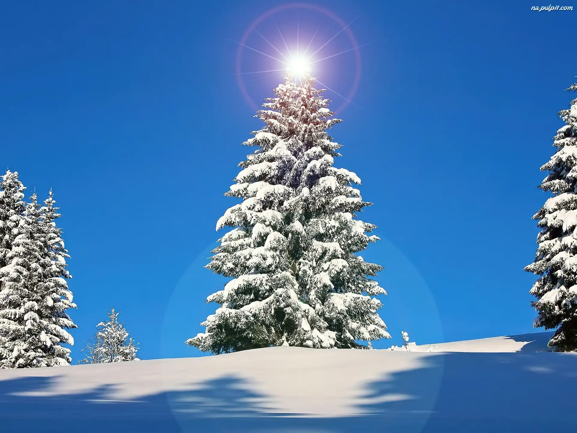 Słońce, Choinki, Ośnieżone, Niebo Na Pulpit