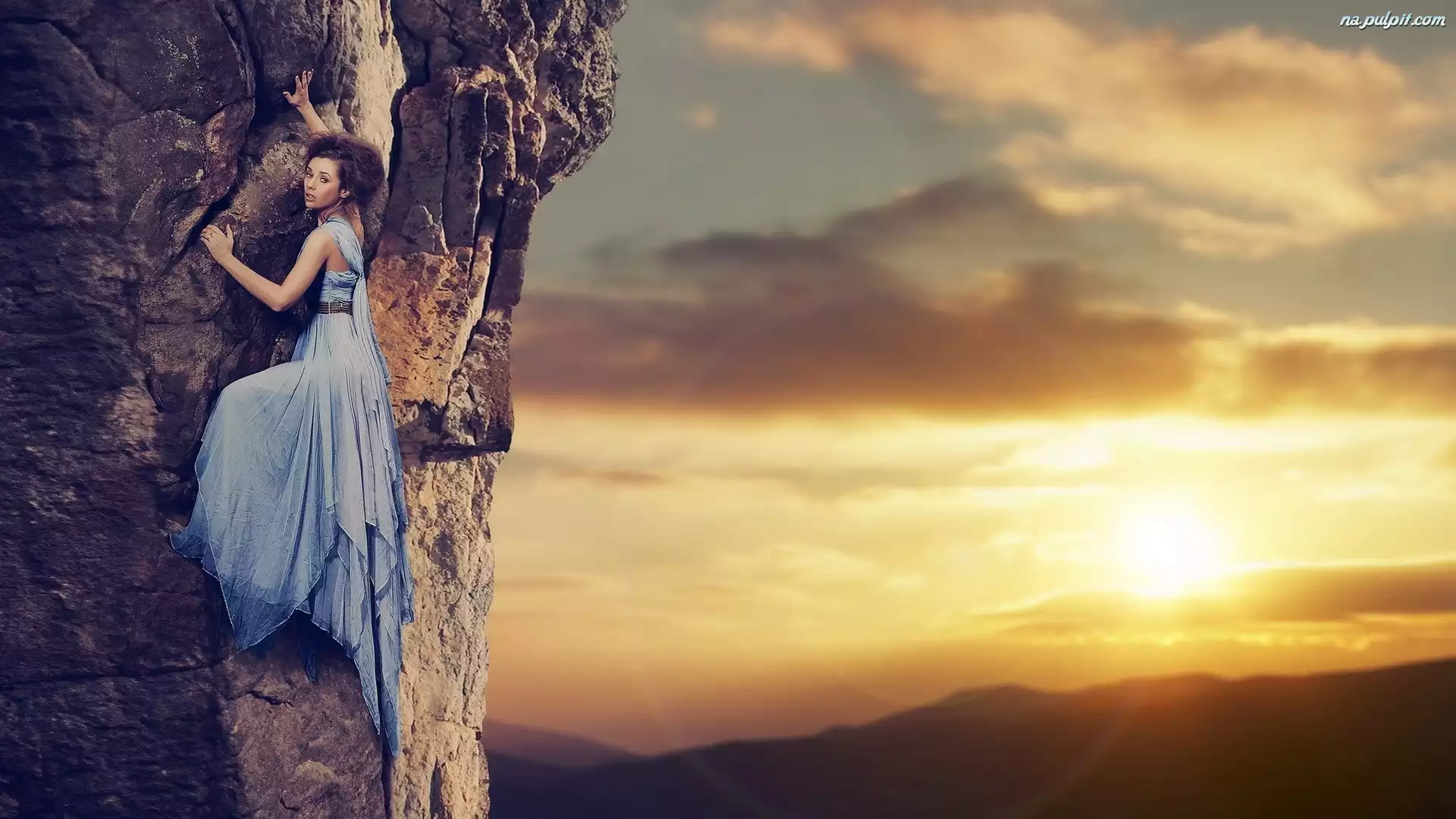 Słońce, Kobieta, Skała, Wspinaczka Na Pulpit
