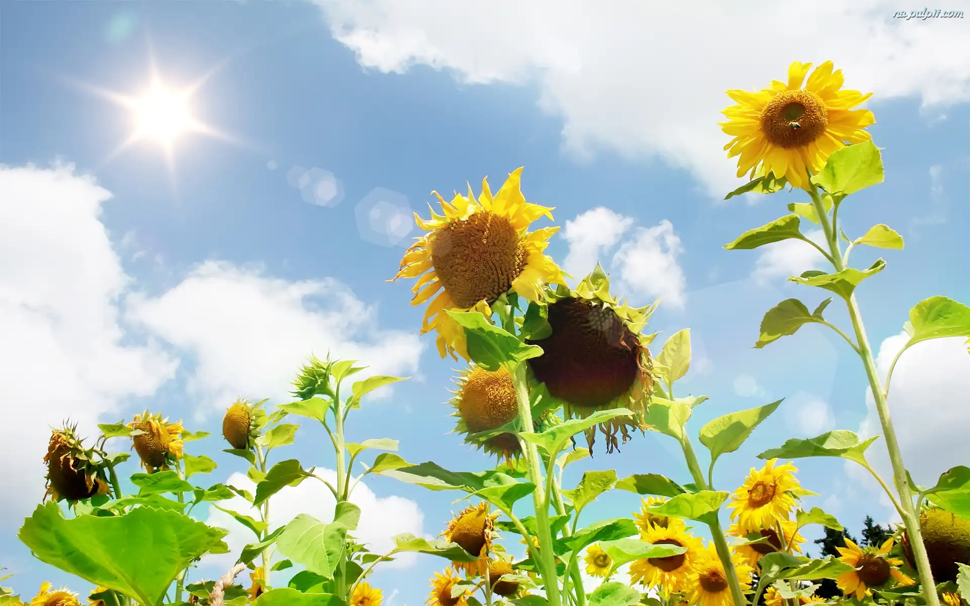Słoneczniki, Słońce, Niebo Na Pulpit