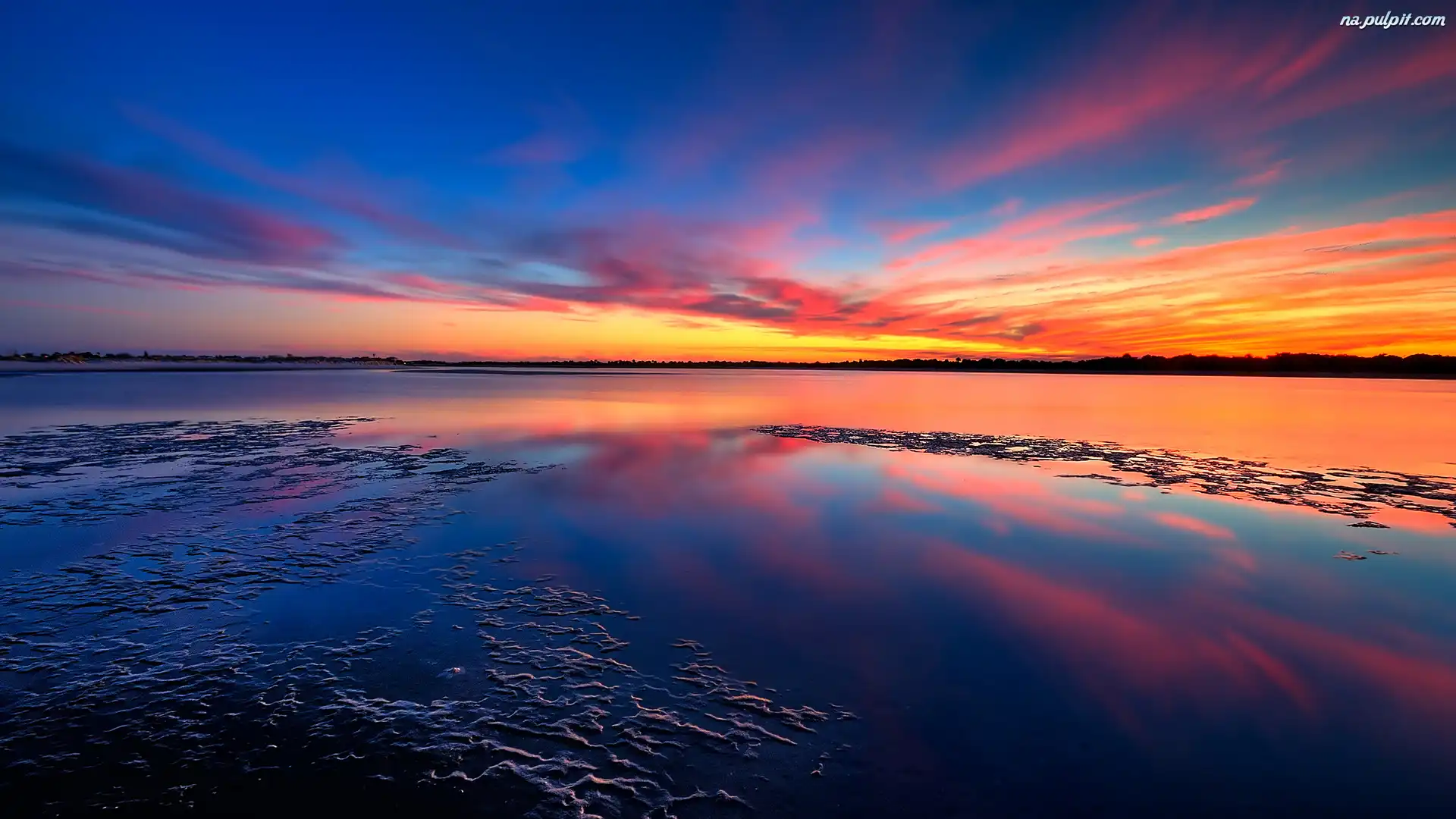 Słońce, Niebo, Jezioro, Spokojne, Zachodzące