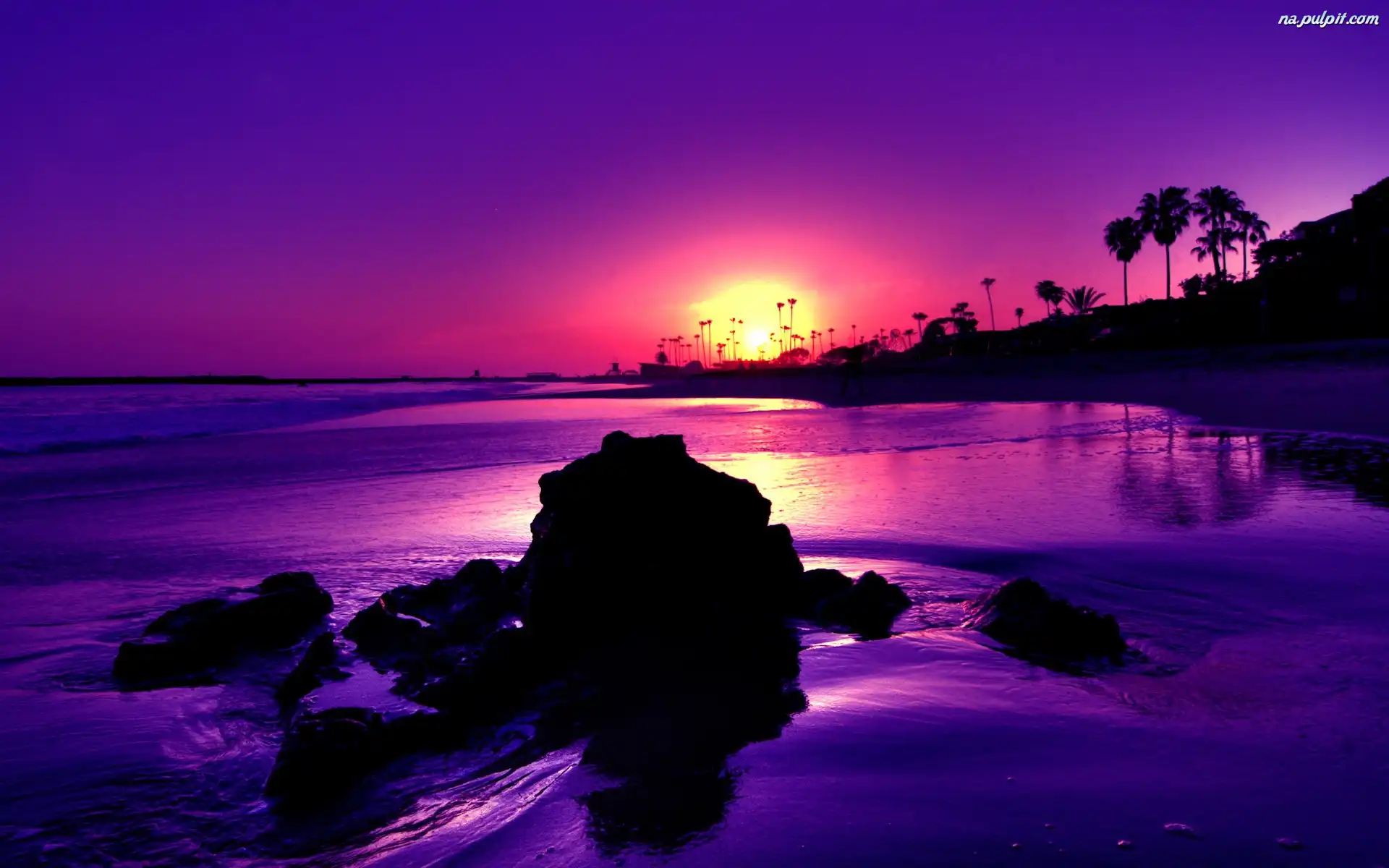 Słońce, Fale, Skały, Promienie, Zachód, Morze Na Pulpit
