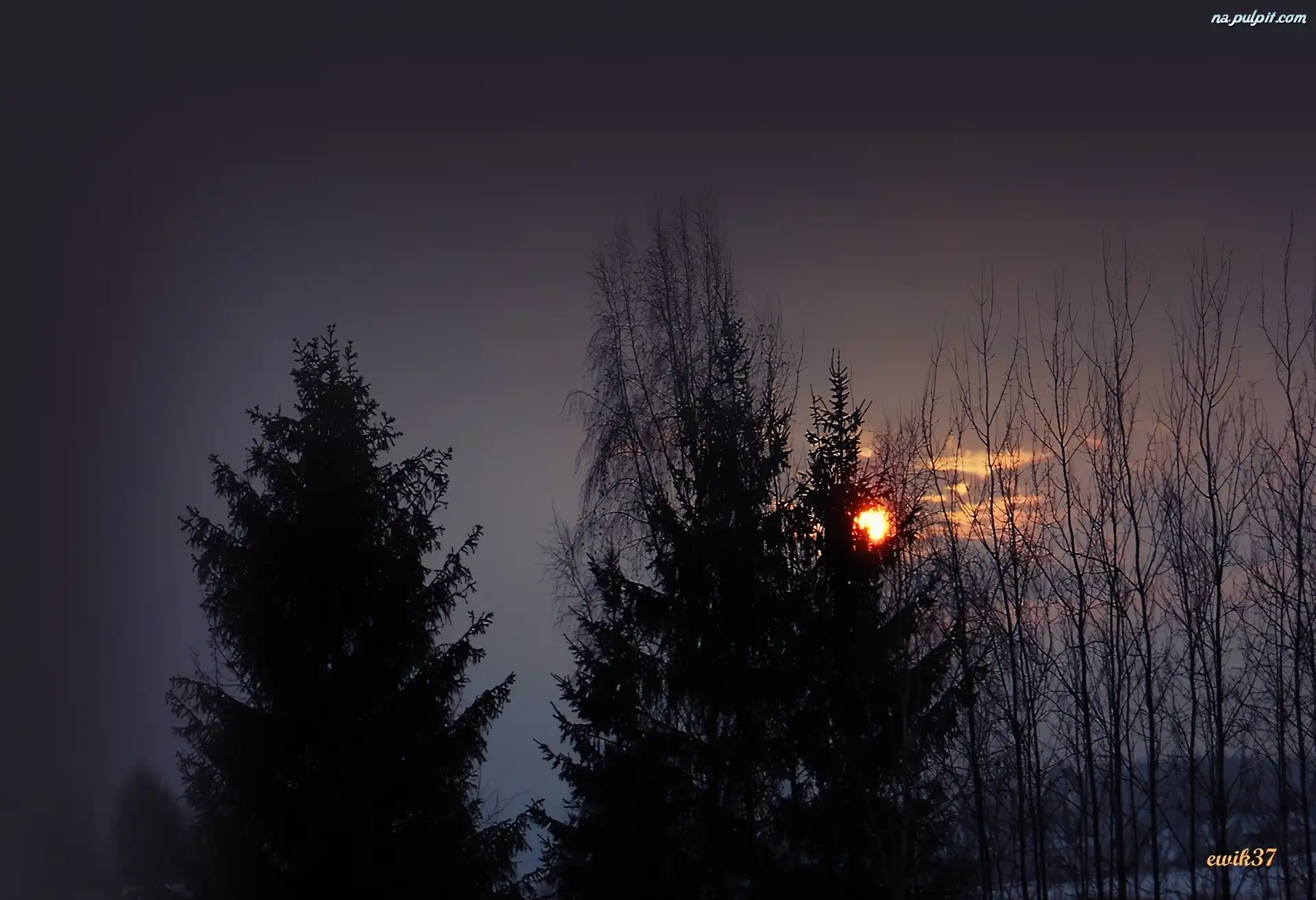 Słońce, Drzewa, Zima, Ukryte
