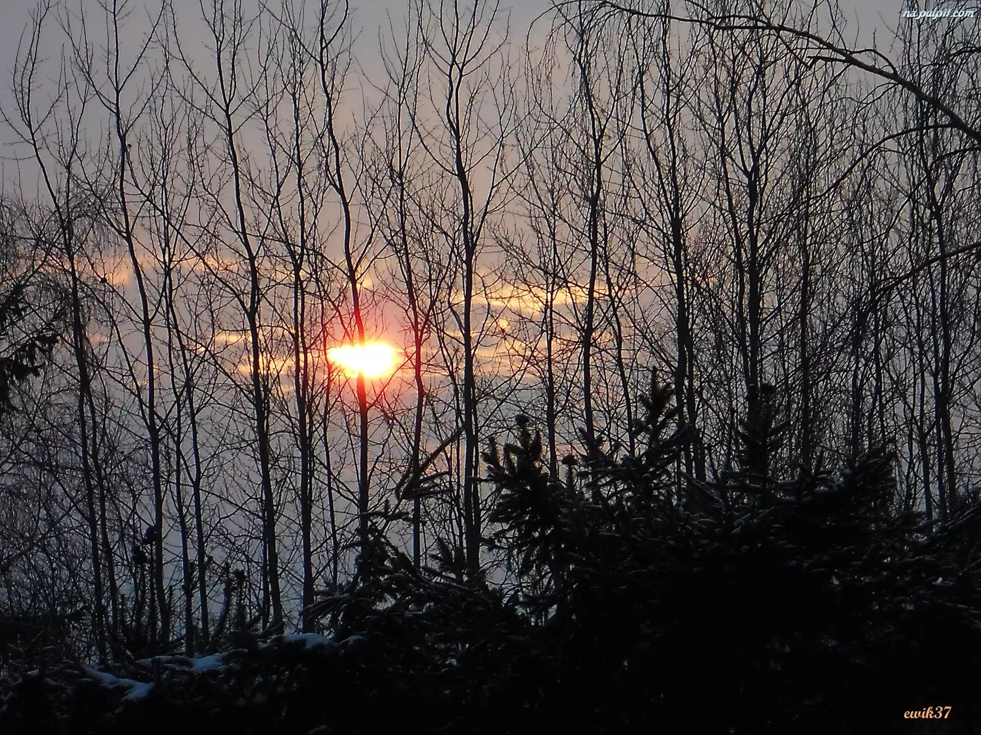 Słońce, Ośnieżone, Zima, Drzewa